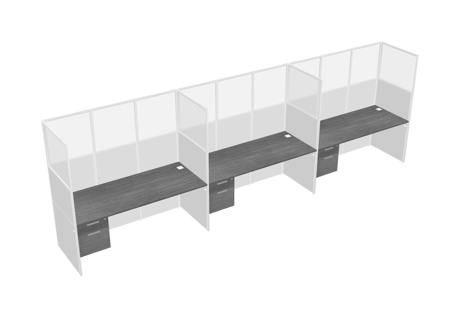 Grey Shared Rectangular Office Cubicle Panel System With Hanging Drawers For 3 Persons