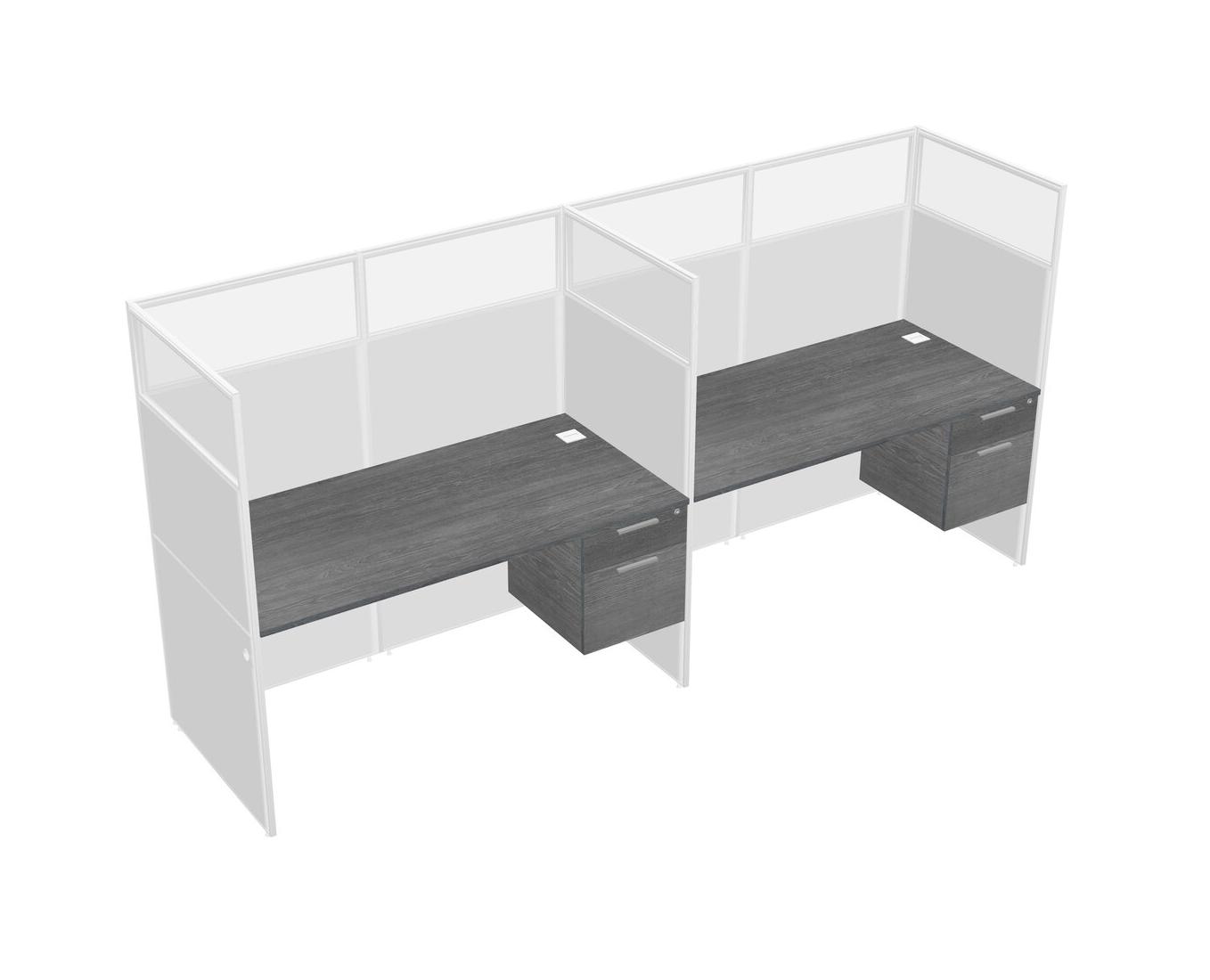Grey Shared Rectangular Office Cubicle Panel System With Hanging Drawers For 2 Persons