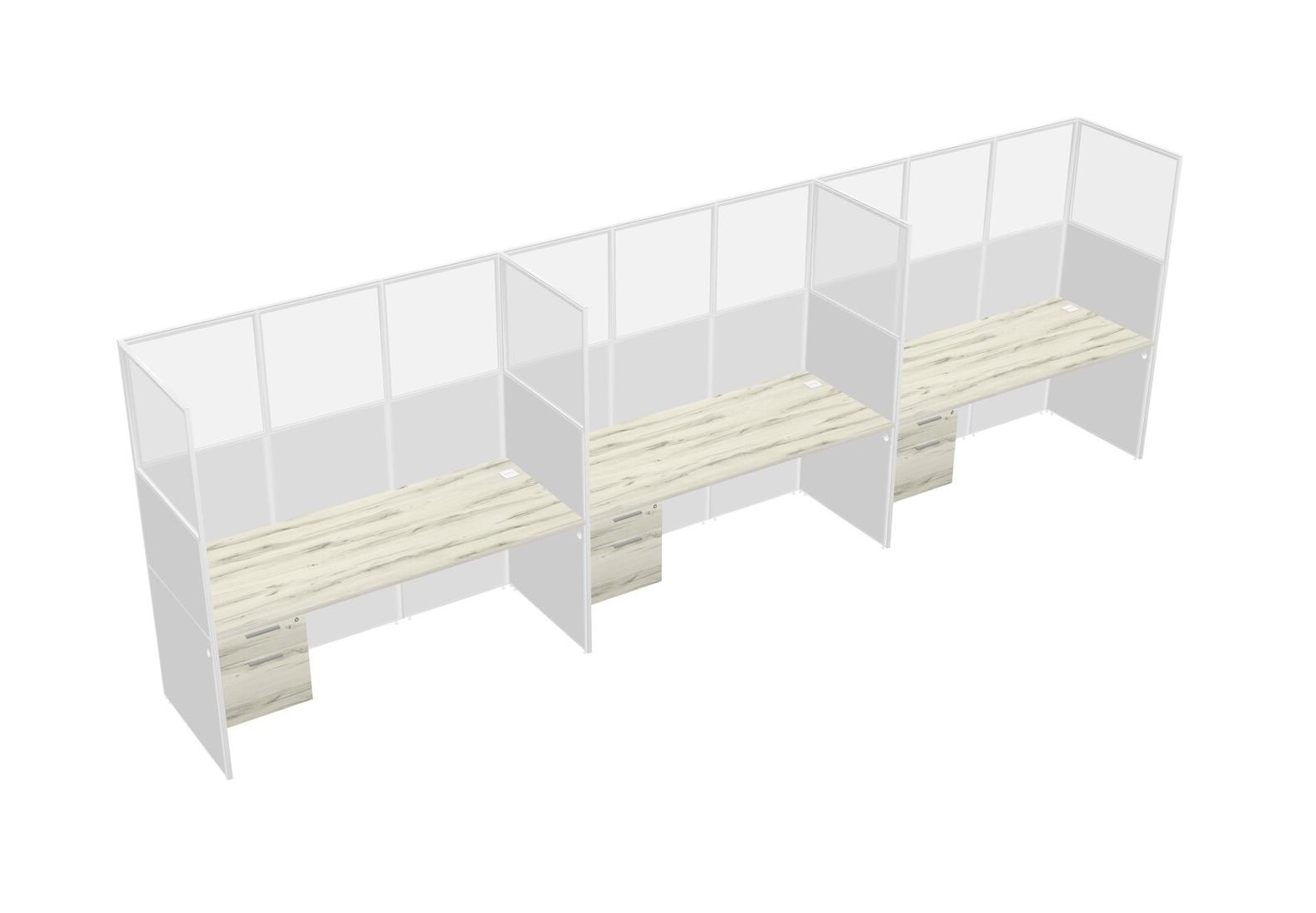 Heinne Holz Shared Rectangular Office Cubicle Panel System With Hanging Drawers For 3 Persons
