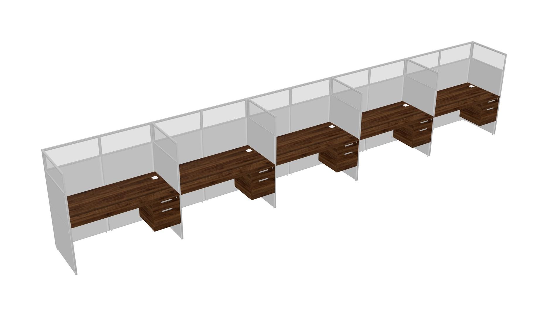Columbia Walnut Shared Rectangular Office Cubicle Panel System With Hanging Drawers For 5 Persons