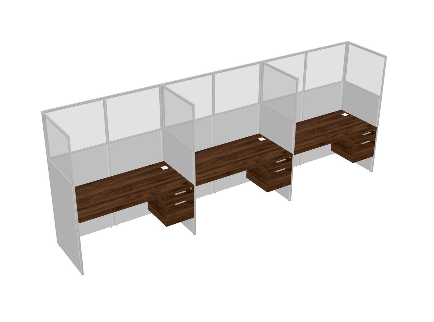 Columbia Walnut Shared Rectangular Office Cubicle Panel System With Hanging Drawers For 3 Persons