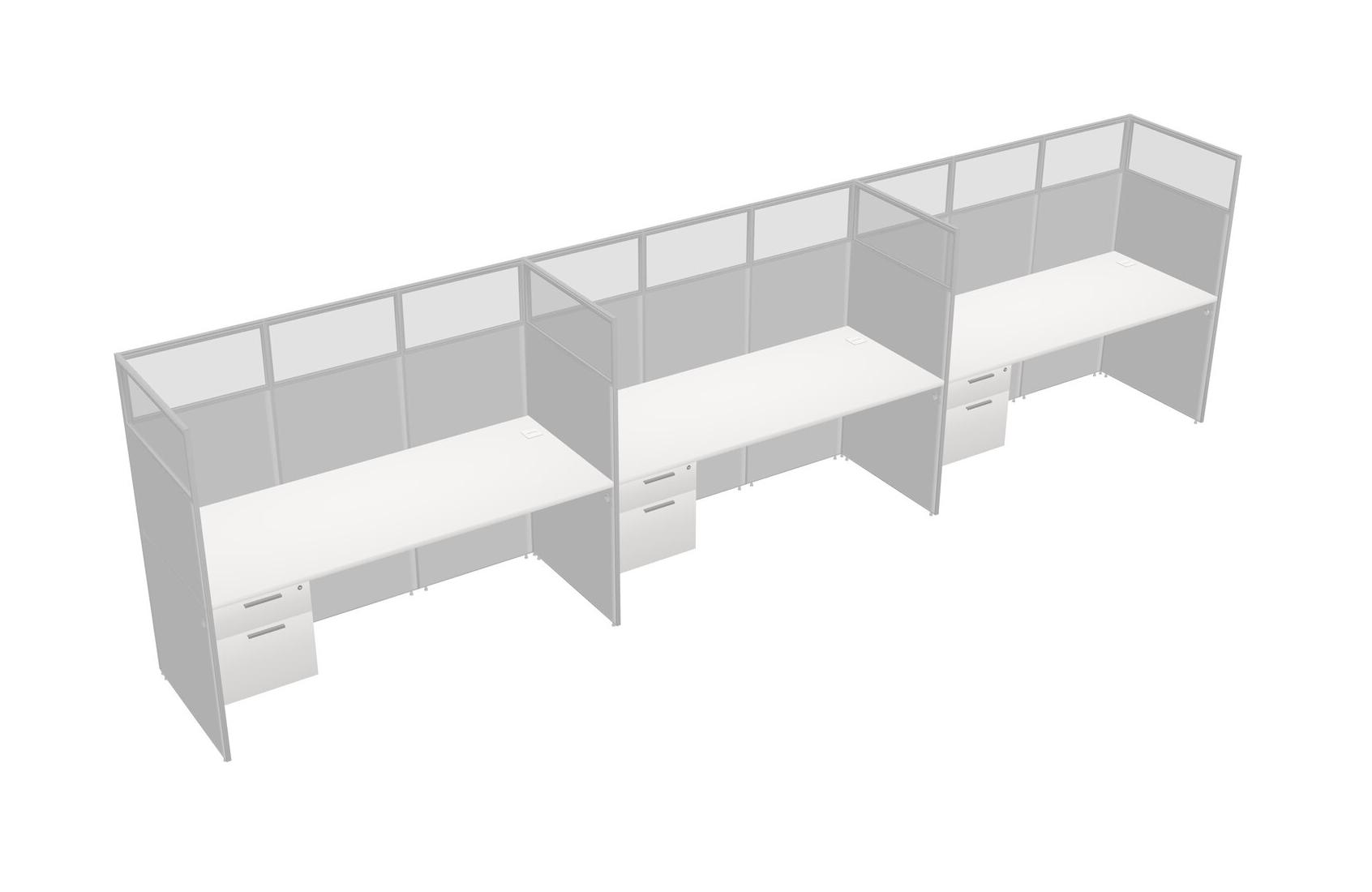 White Shared Rectangular Office Cubicle Panel System With Hanging Drawers For 3 Persons