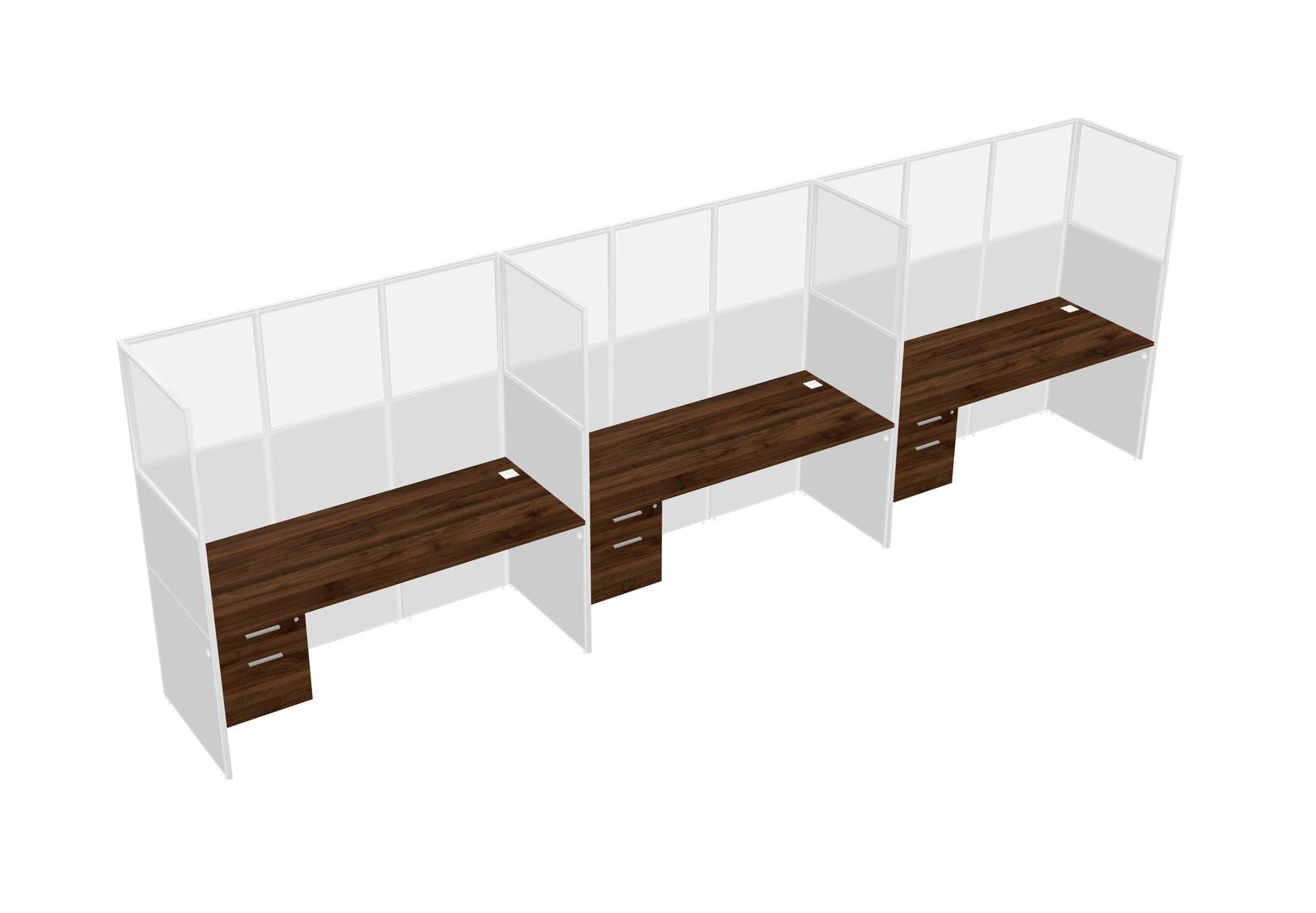 Columbia Walnut Shared Rectangular Office Cubicle Panel System With Hanging Drawers For 3 Persons