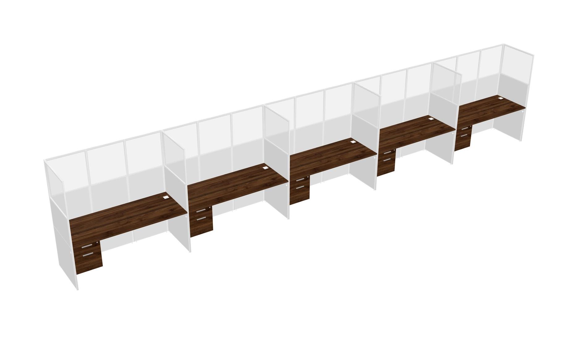Columbia Walnut Shared Rectangular Office Cubicle Panel System With Hanging Drawers For 5 Persons