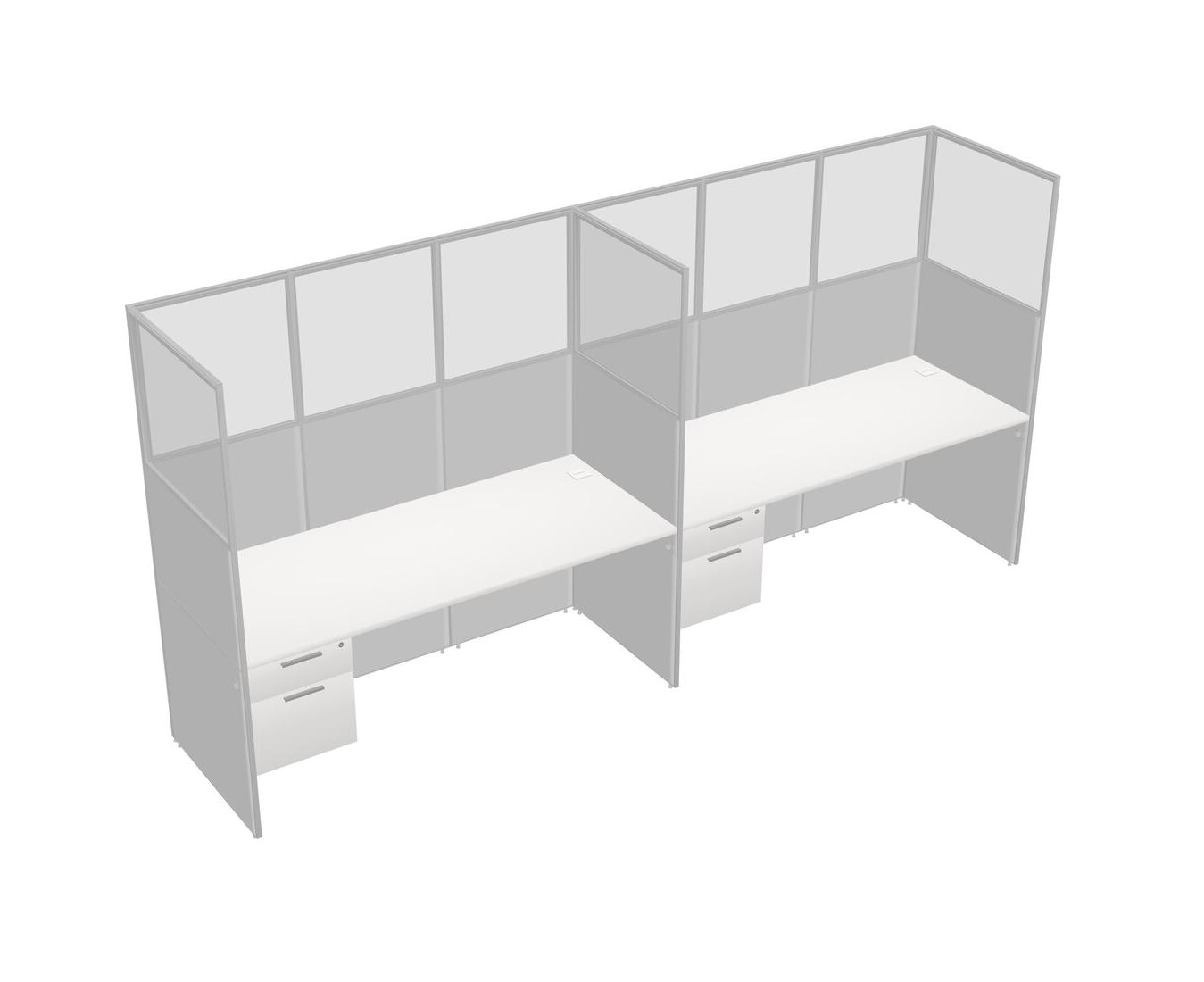 White Shared Rectangular Office Cubicle Panel System With Hanging Drawers For 2 Persons