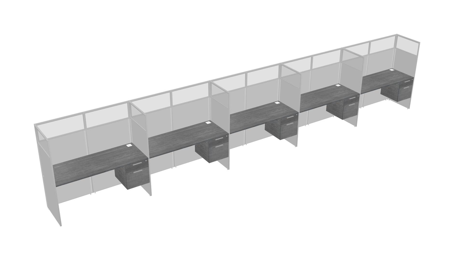Grey Shared Rectangular Office Cubicle Panel System With Hanging Drawers For 5 Persons
