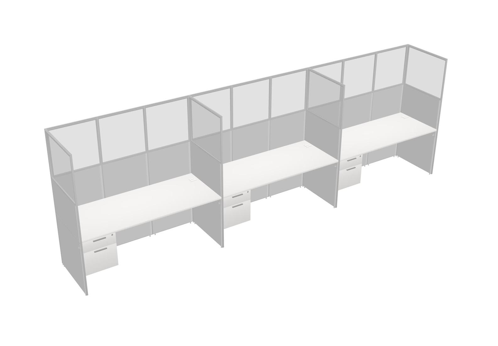 White Shared Rectangular Office Cubicle Panel System With Hanging Drawers For 3 Persons