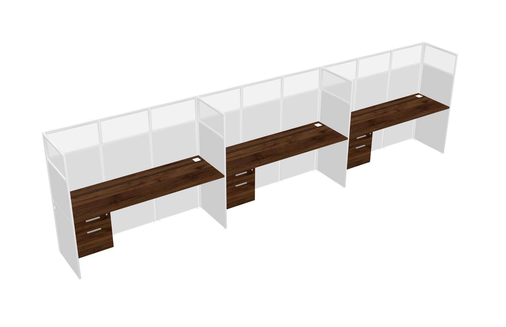 Columbia Walnut Shared Rectangular Office Cubicle Panel System With Hanging Drawers For 3 Persons