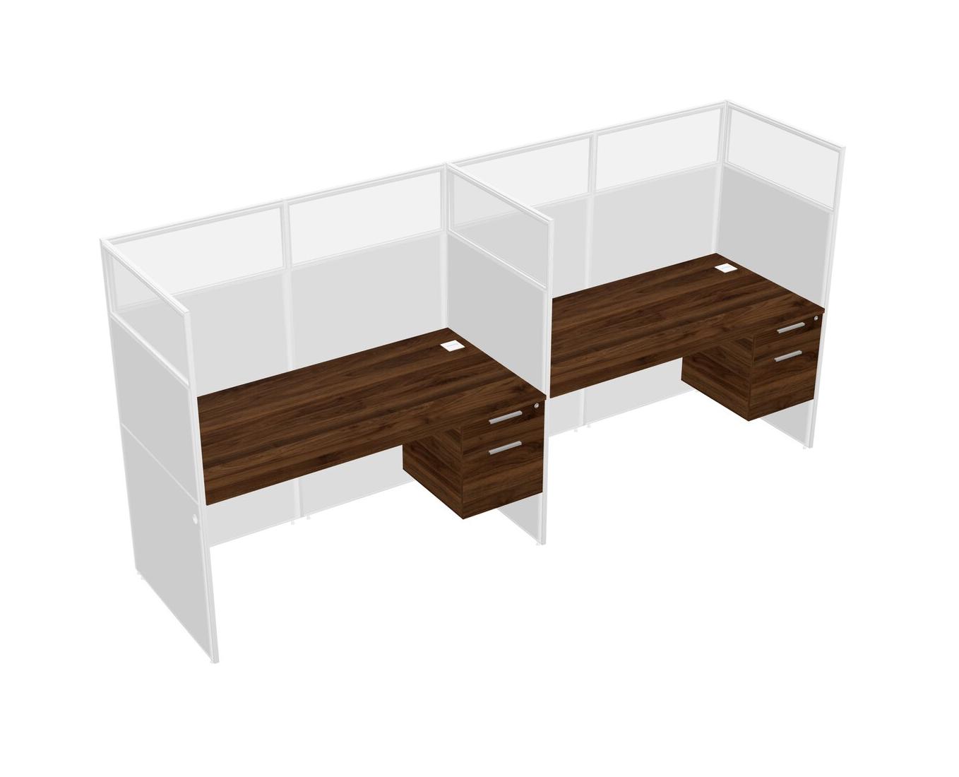 Columbia Walnut Shared Rectangular Office Cubicle Panel System With Hanging Drawers For 2 Persons