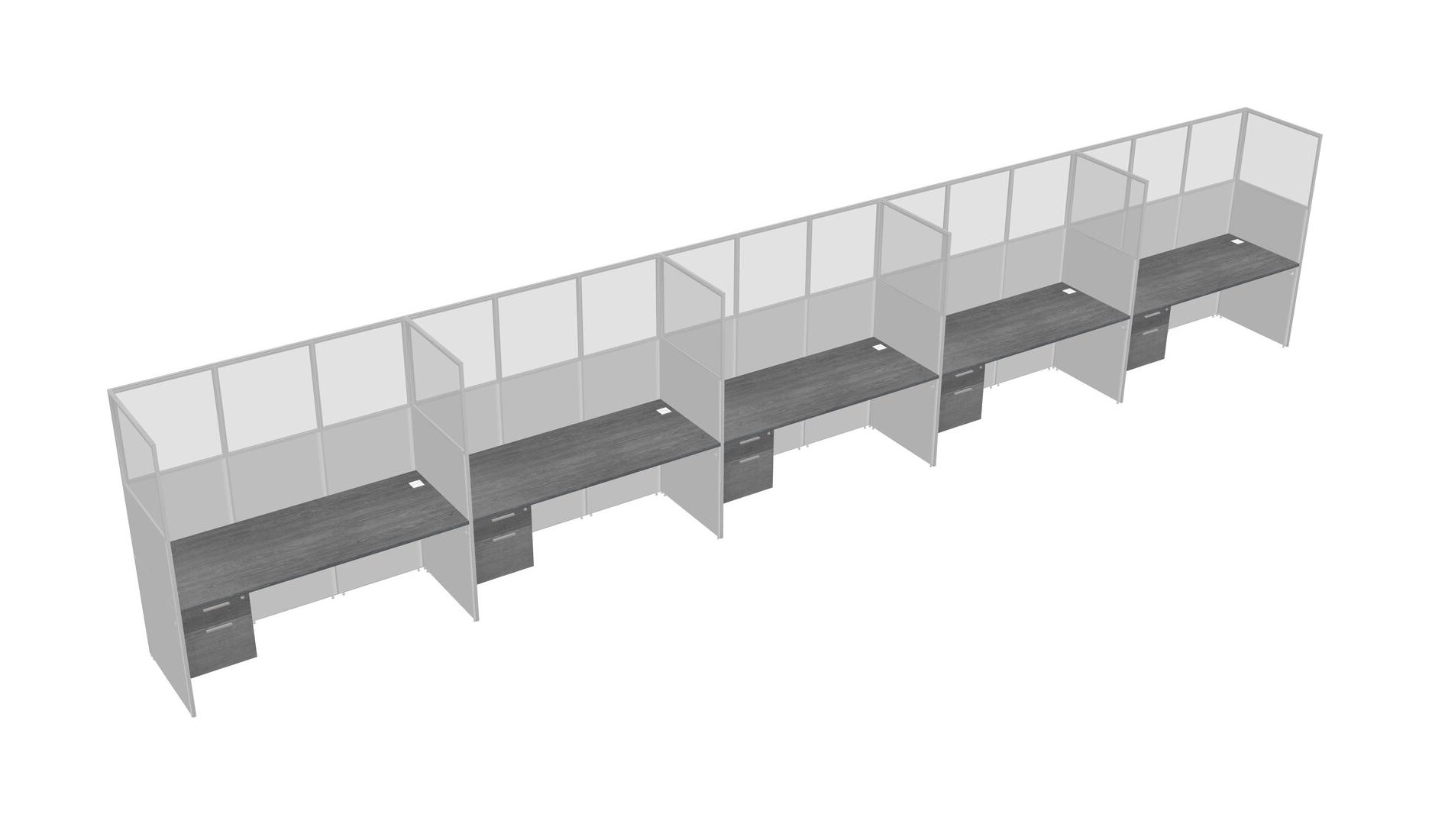 Grey Shared Rectangular Office Cubicle Panel System With Hanging Drawers For 5 Persons