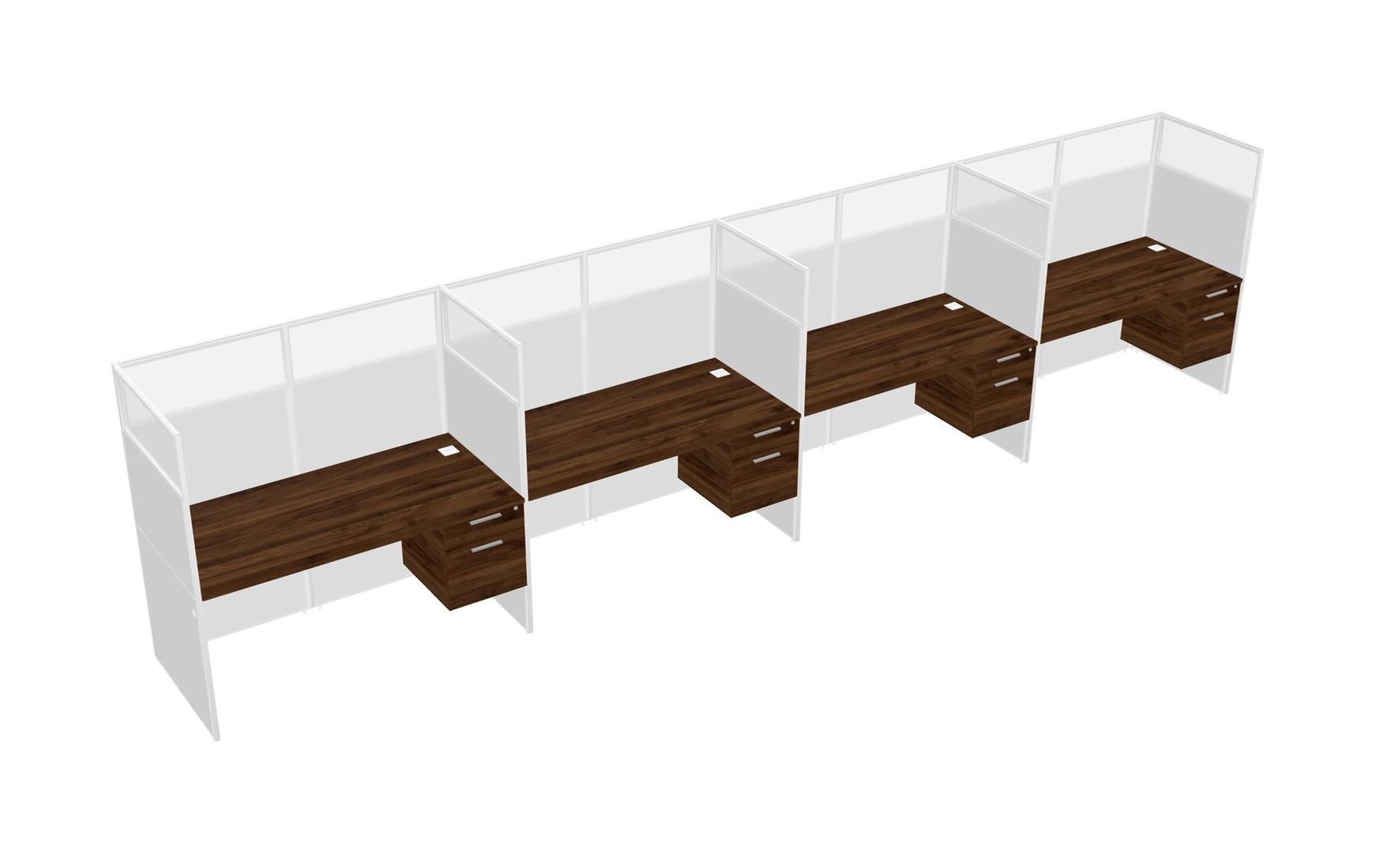 Columbia Walnut Shared Rectangular Office Cubicle Panel System With Hanging Drawers For 4 Persons