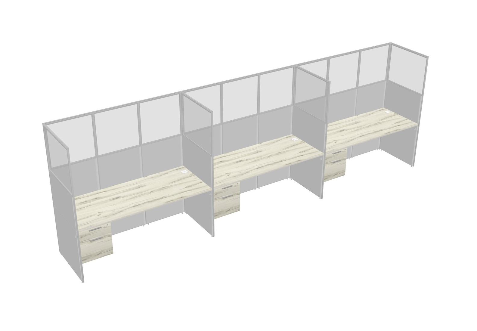Heinne Holz Shared Rectangular Office Cubicle Panel System With Hanging Drawers For 3 Persons