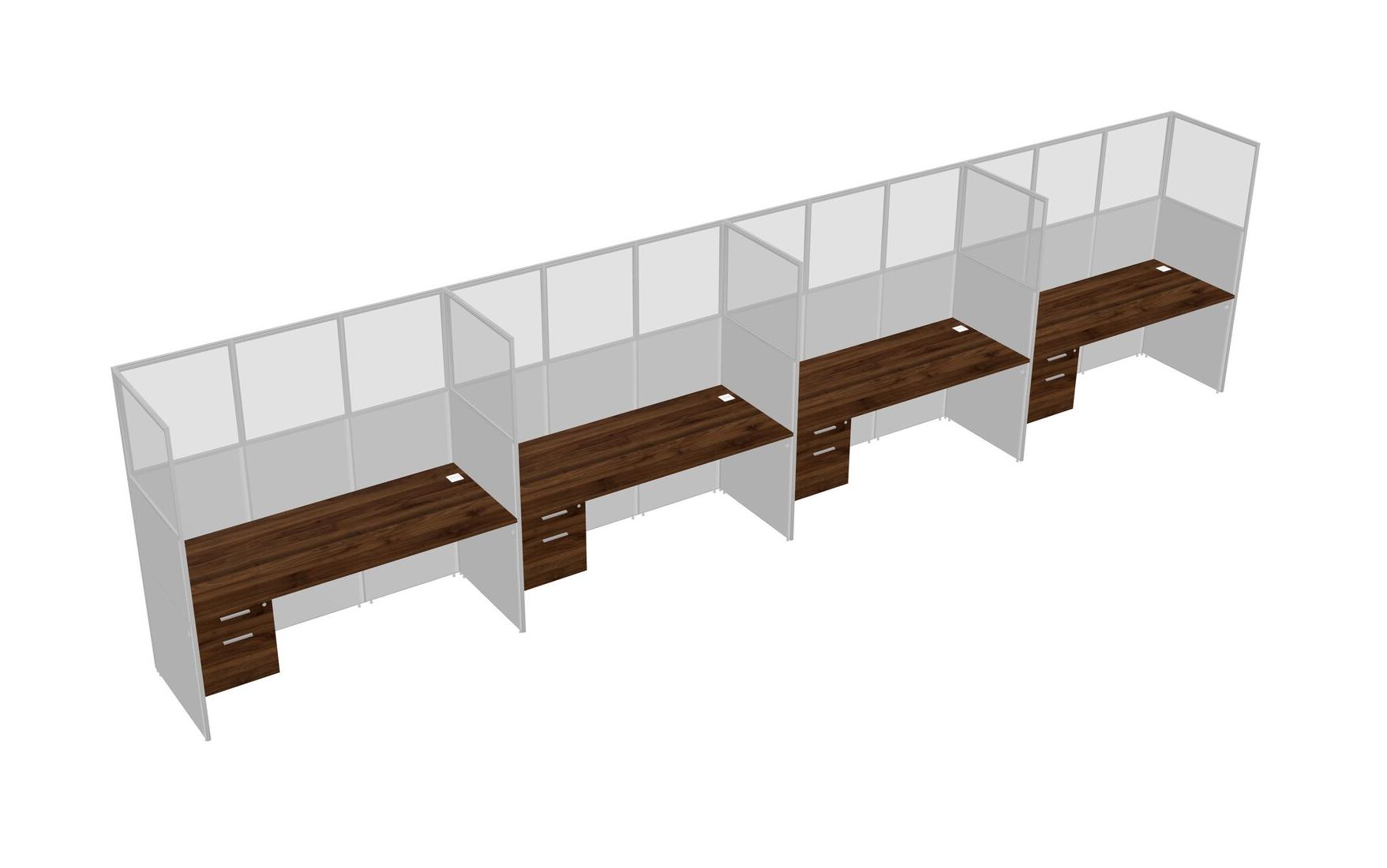 Columbia Walnut Shared Rectangular Office Cubicle Panel System With Hanging Drawers For 4 Persons