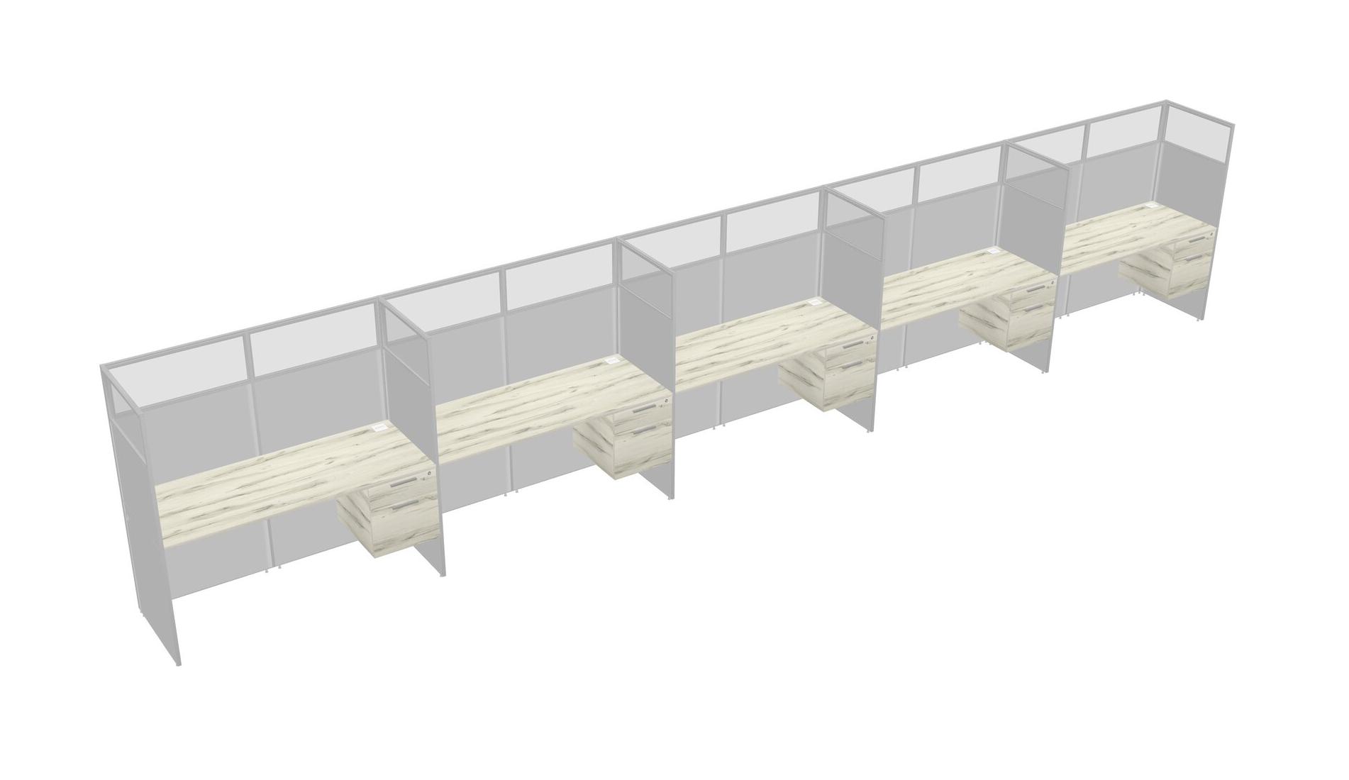 Heinne Holz Shared Rectangular Office Cubicle Panel System With Hanging Drawers For 5 Persons