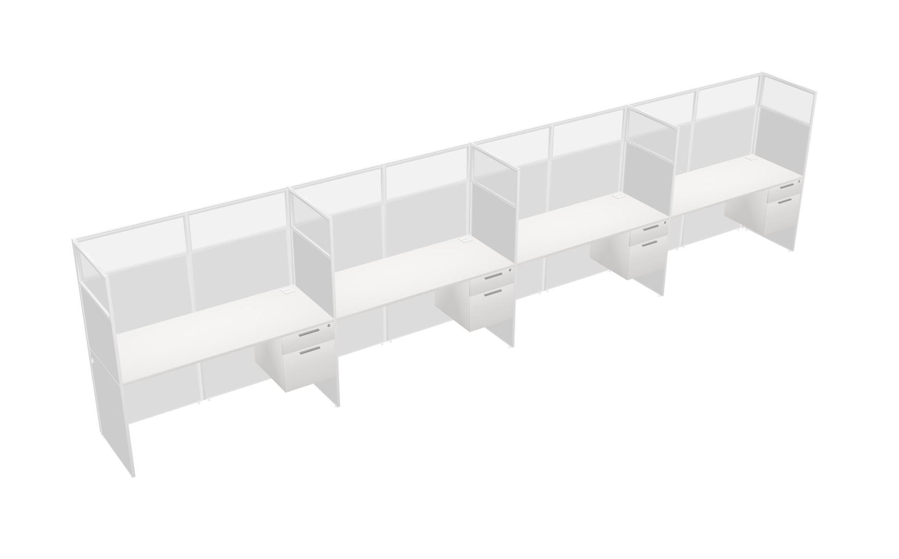 White Shared Rectangular Office Cubicle Panel System With Hanging Drawers For 4 Persons