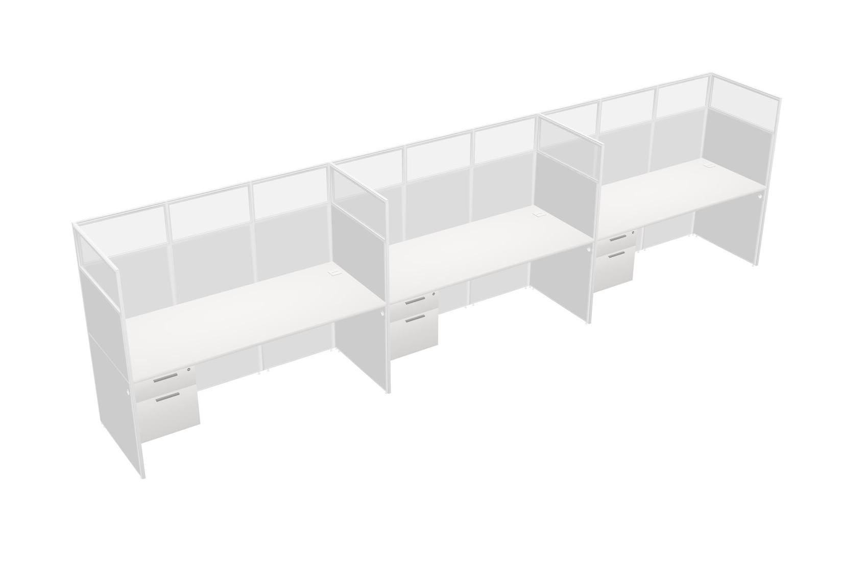 White Shared Rectangular Office Cubicle Panel System With Hanging Drawers For 3 Persons