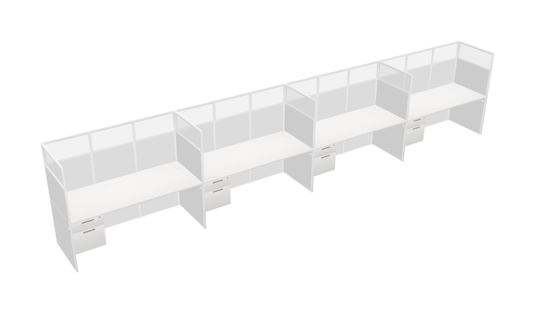 White Shared Rectangular Office Cubicle Panel System With Hanging Drawers For 4 Persons