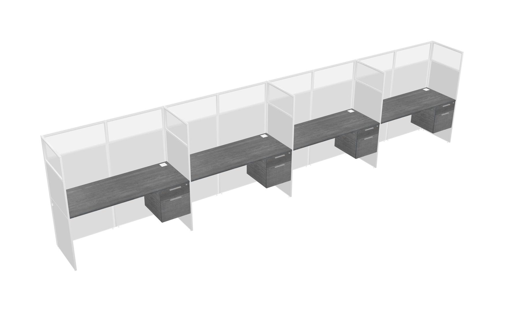 Grey Shared Rectangular Office Cubicle Panel System With Hanging Drawers For 4 Persons