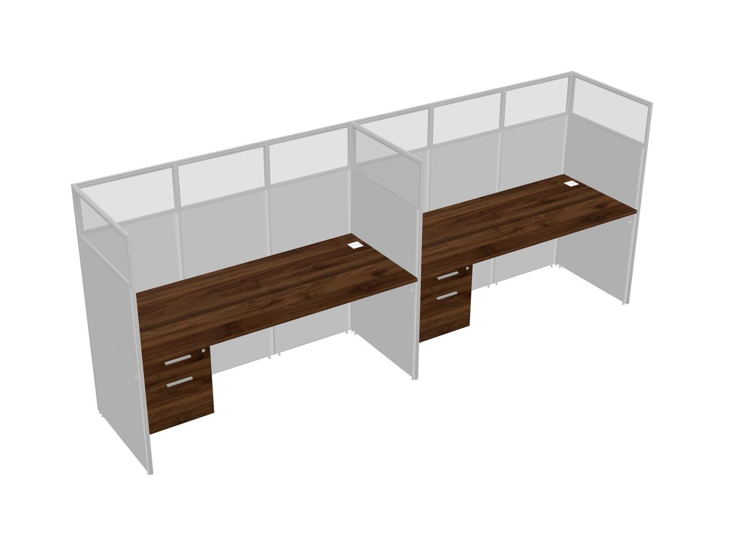 Columbia Walnut Shared Rectangular Office Cubicle Panel System With Hanging Drawers For 2 Persons