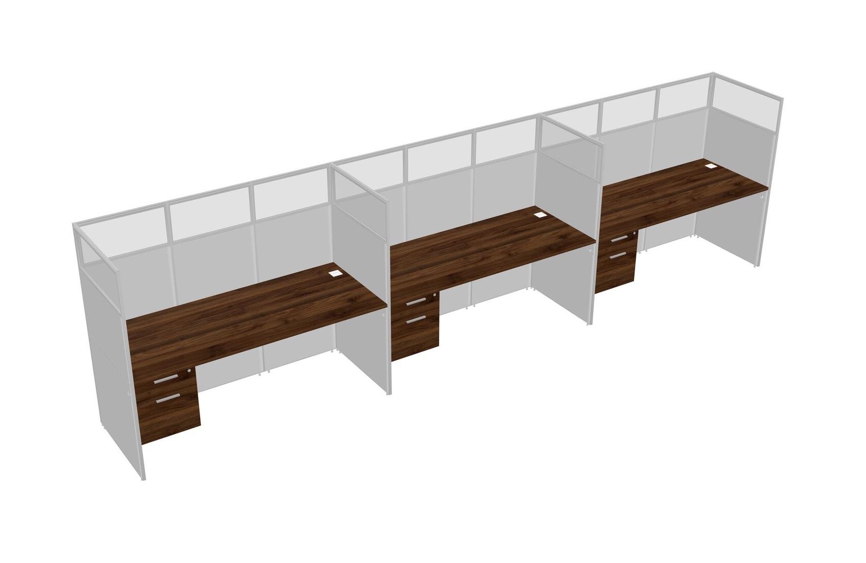 Columbia Walnut Shared Rectangular Office Cubicle Panel System With Hanging Drawers For 3 Persons