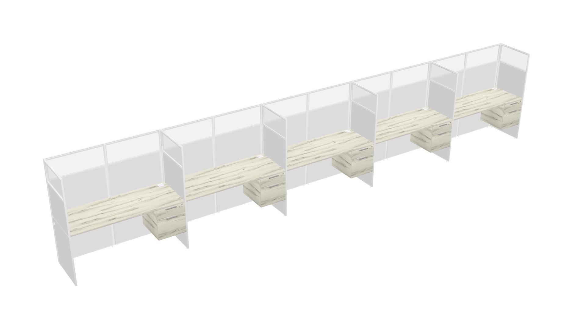 Heinne Holz Shared Rectangular Office Cubicle Panel System With Hanging Drawers For 5 Persons