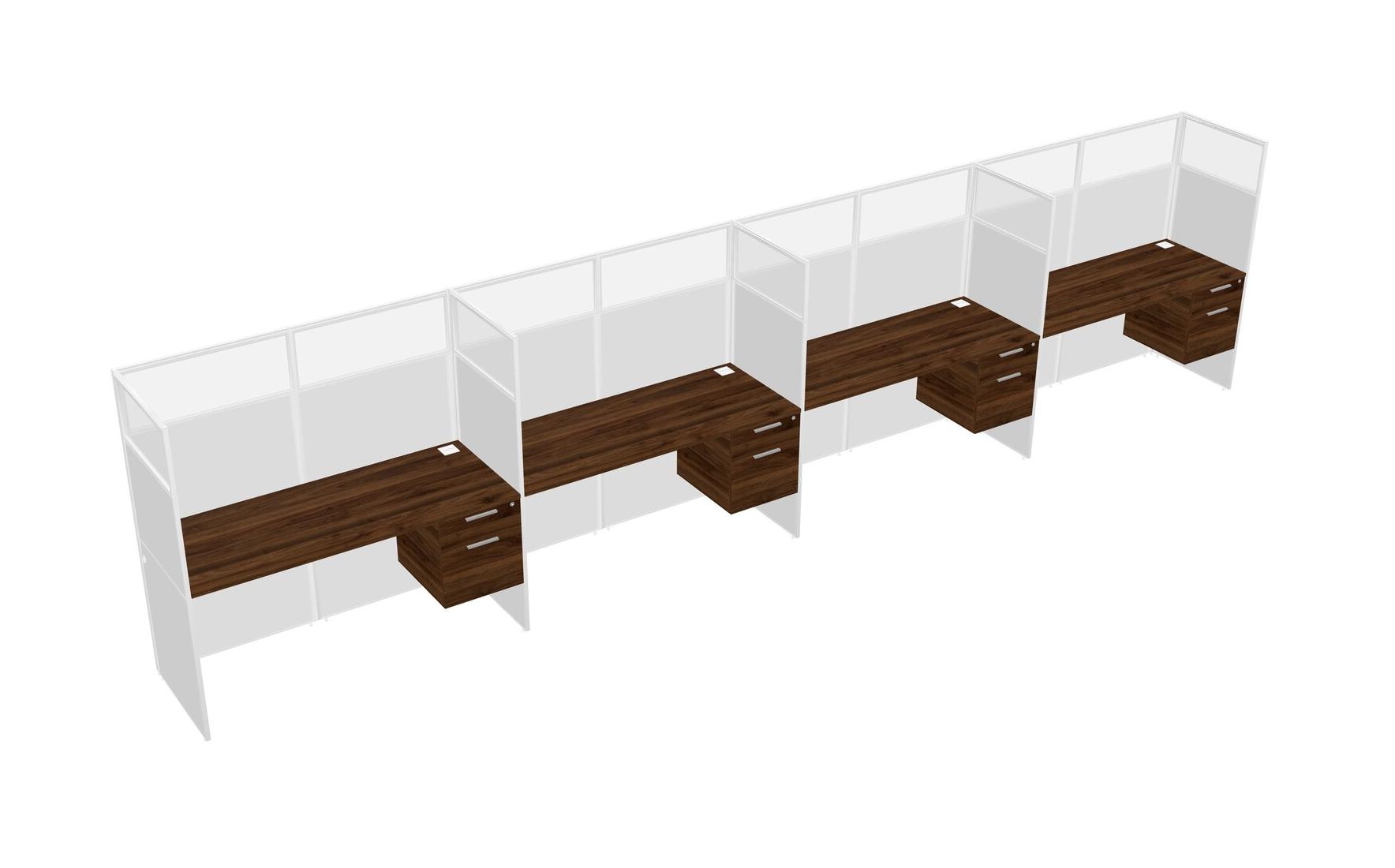 Columbia Walnut Shared Rectangular Office Cubicle Panel System With Hanging Drawers For 4 Persons