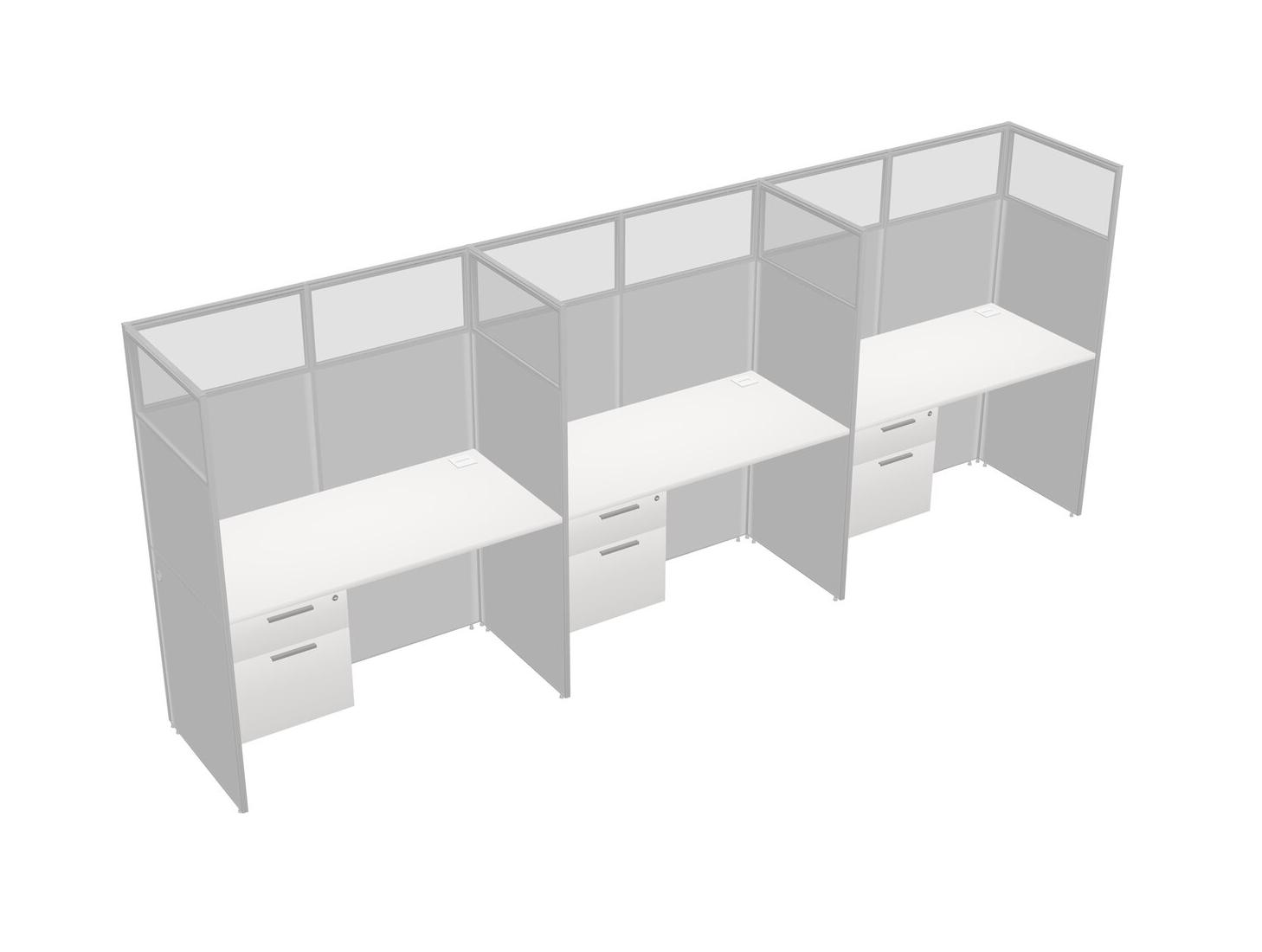 White Shared Rectangular Office Cubicle Panel System With Hanging Drawers For 3 Persons