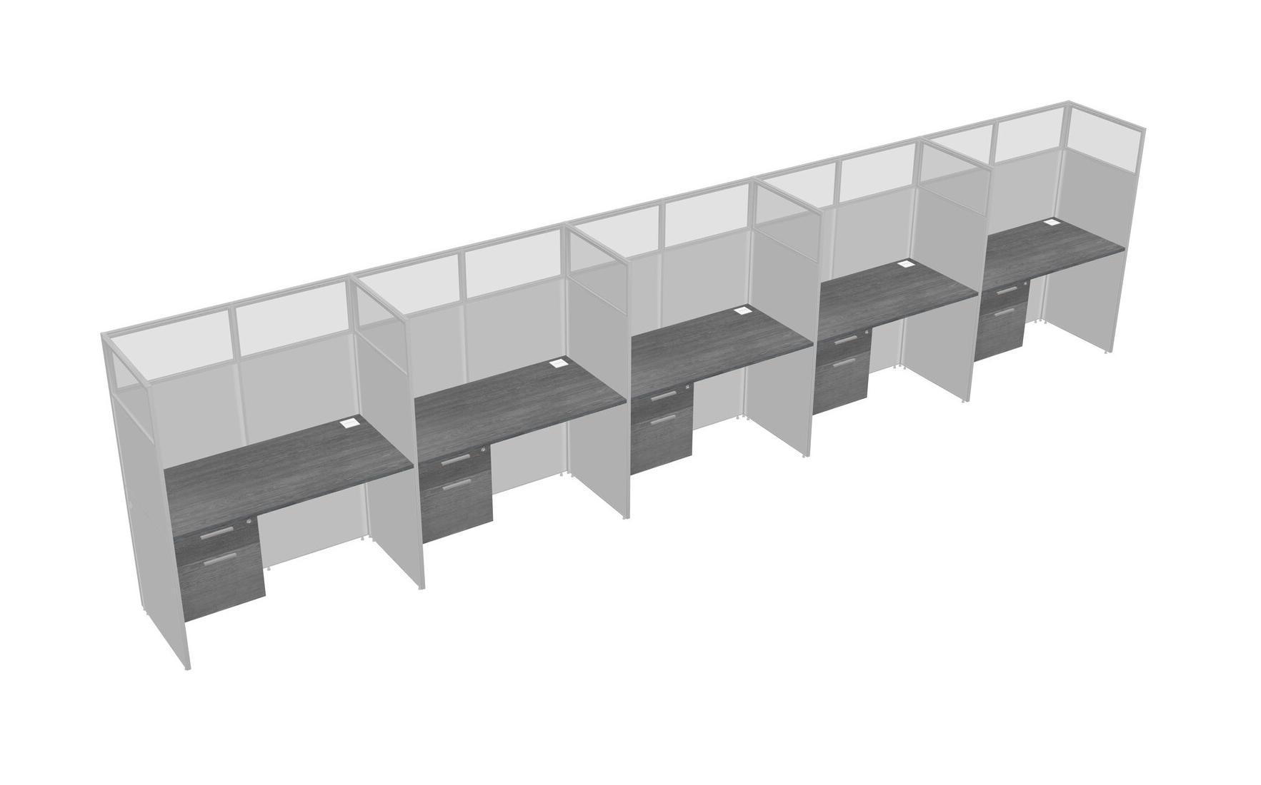 Grey Shared Rectangular Office Cubicle Panel System With Hanging Drawers For 5 Persons