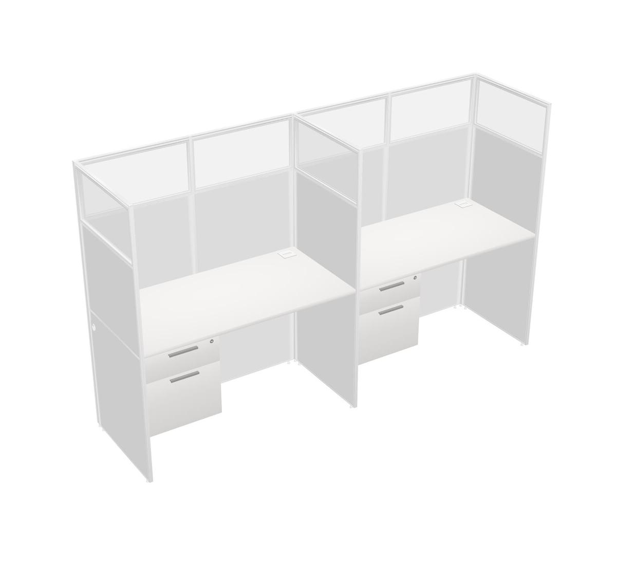 White Shared Rectangular Office Cubicle Panel System With Hanging Drawers For 2 Persons