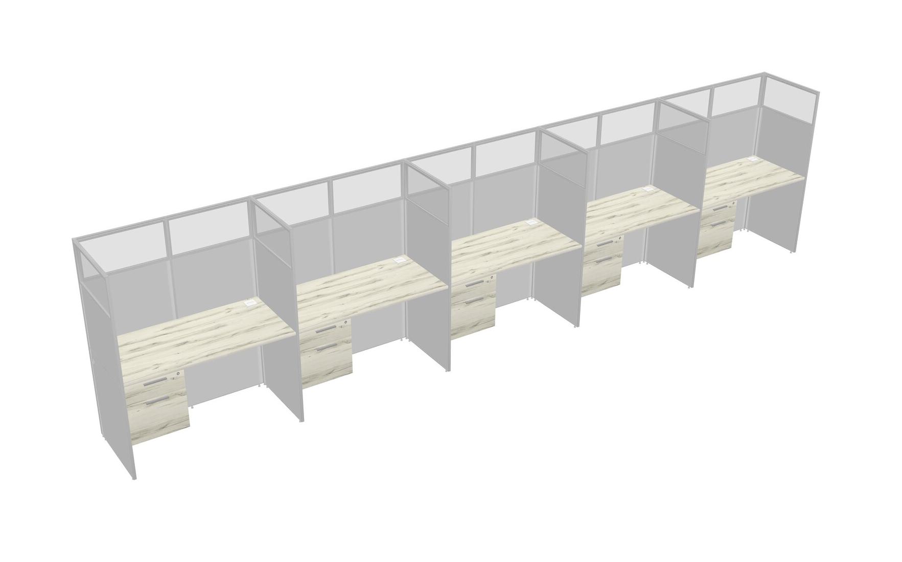 Heinne Holz Shared Rectangular Office Cubicle Panel System With Hanging Drawers For 5 Persons