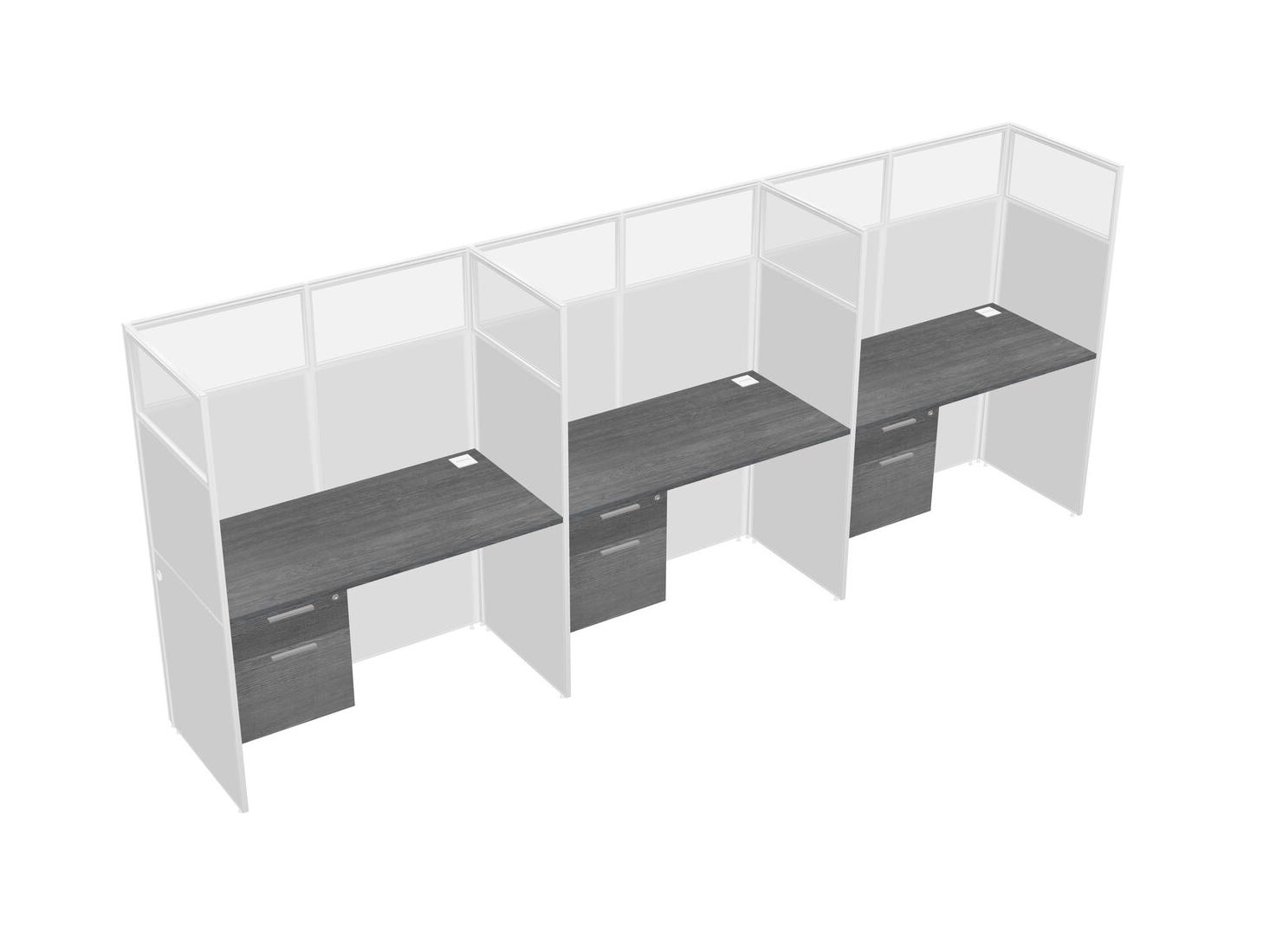 Grey Shared Rectangular Office Cubicle Panel System With Hanging Drawers For 3 Persons