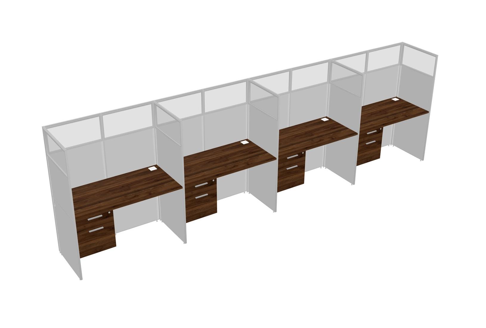 Columbia Walnut Shared Rectangular Office Cubicle Panel System With Hanging Drawers For 4 Persons
