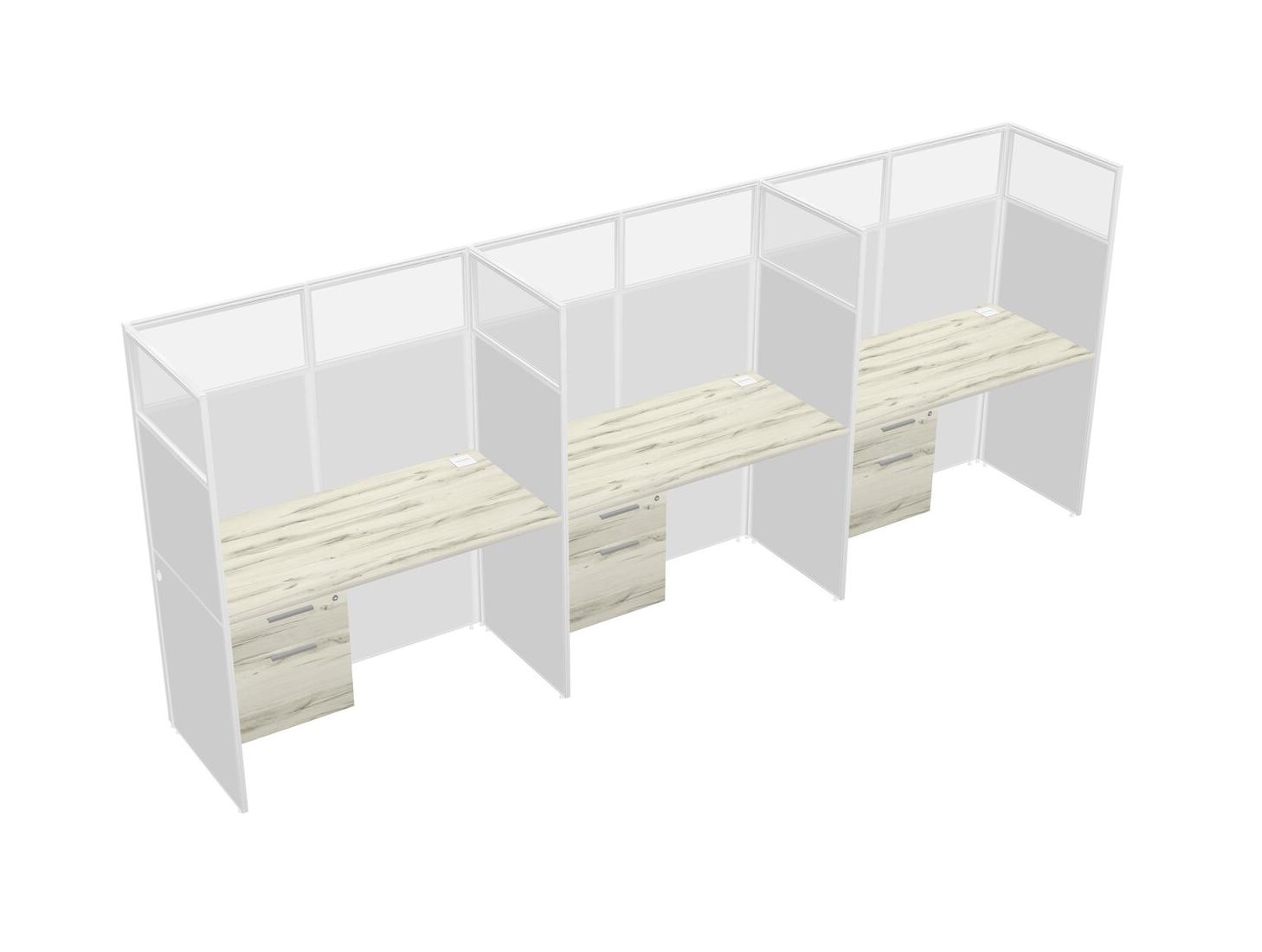 Heinne Holz Shared Rectangular Office Cubicle Panel System With Hanging Drawers For 3 Persons