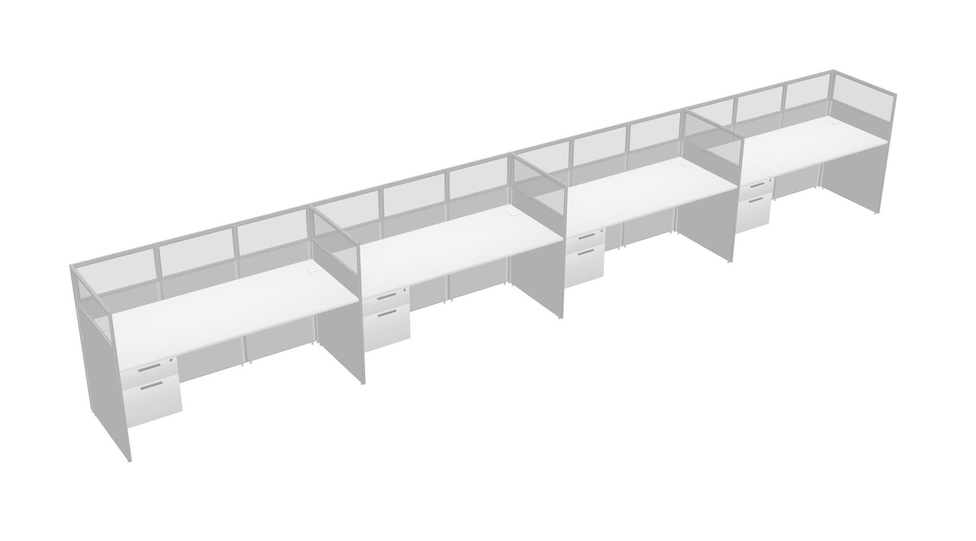 White Shared Rectangular Office Cubicle Panel System With Hanging Drawers For 4 Persons
