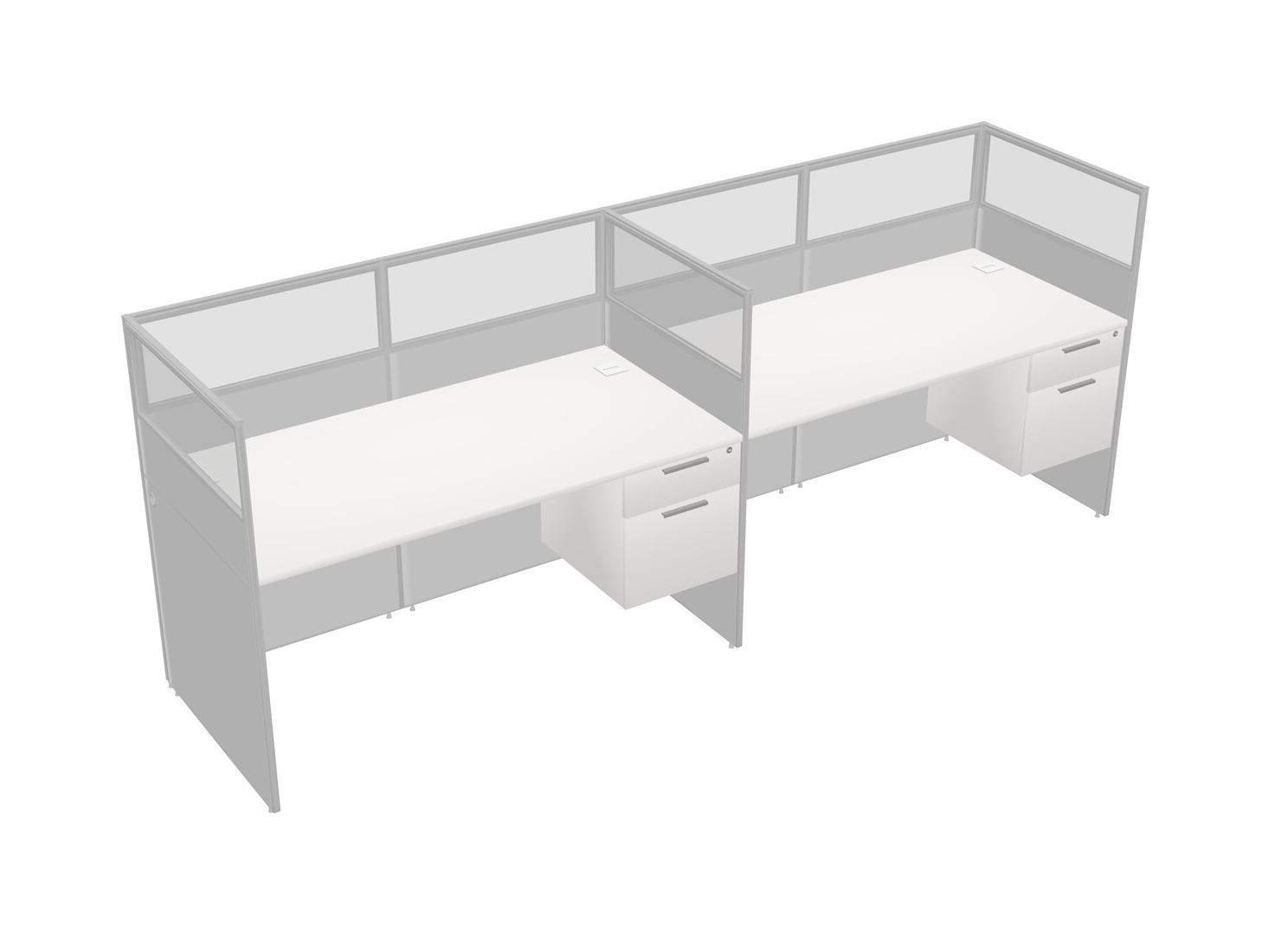 White Shared Rectangular Office Cubicle Panel System With Hanging Drawers For 2 Persons