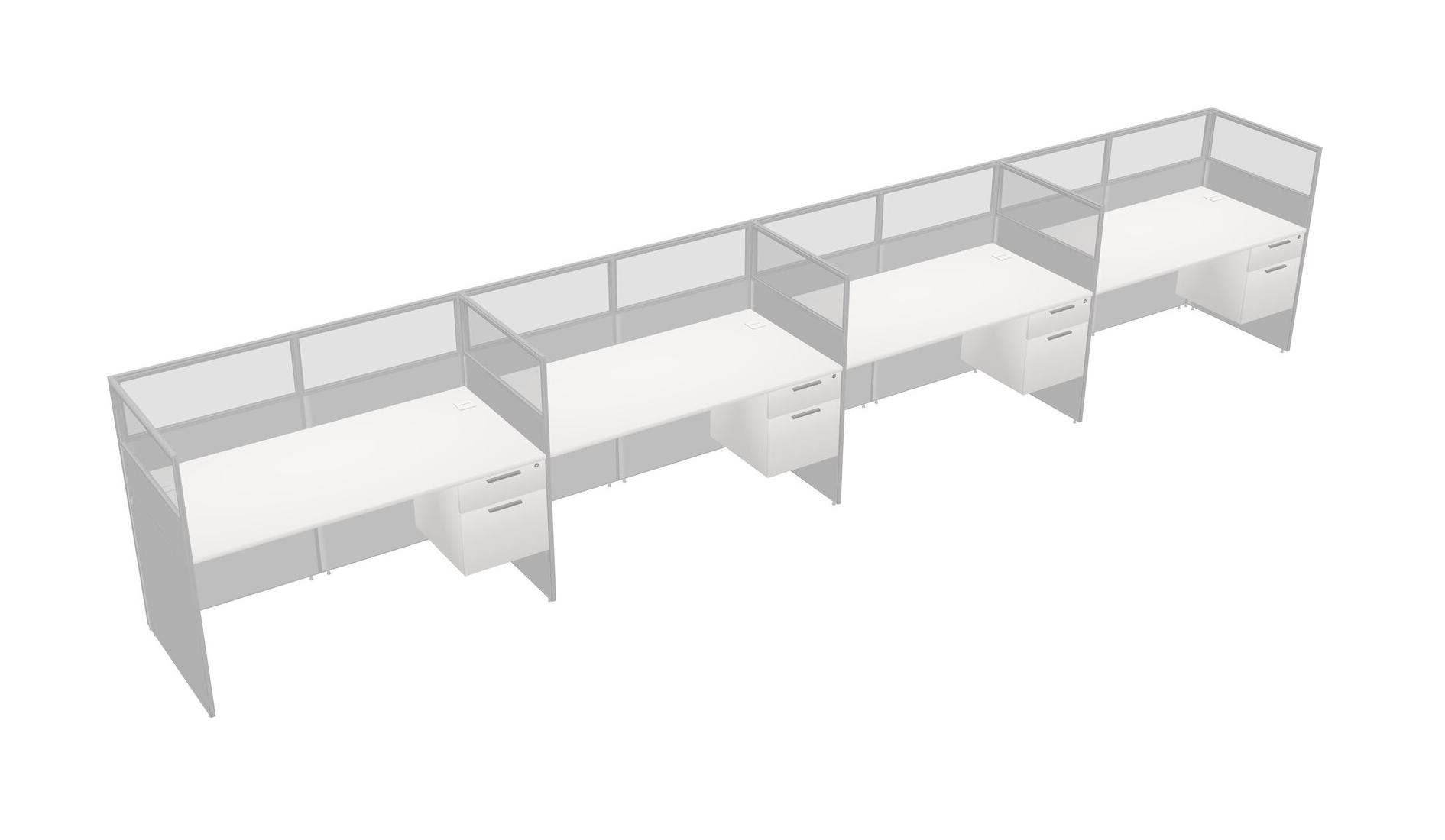 White Shared Rectangular Office Cubicle Panel System With Hanging Drawers For 4 Persons
