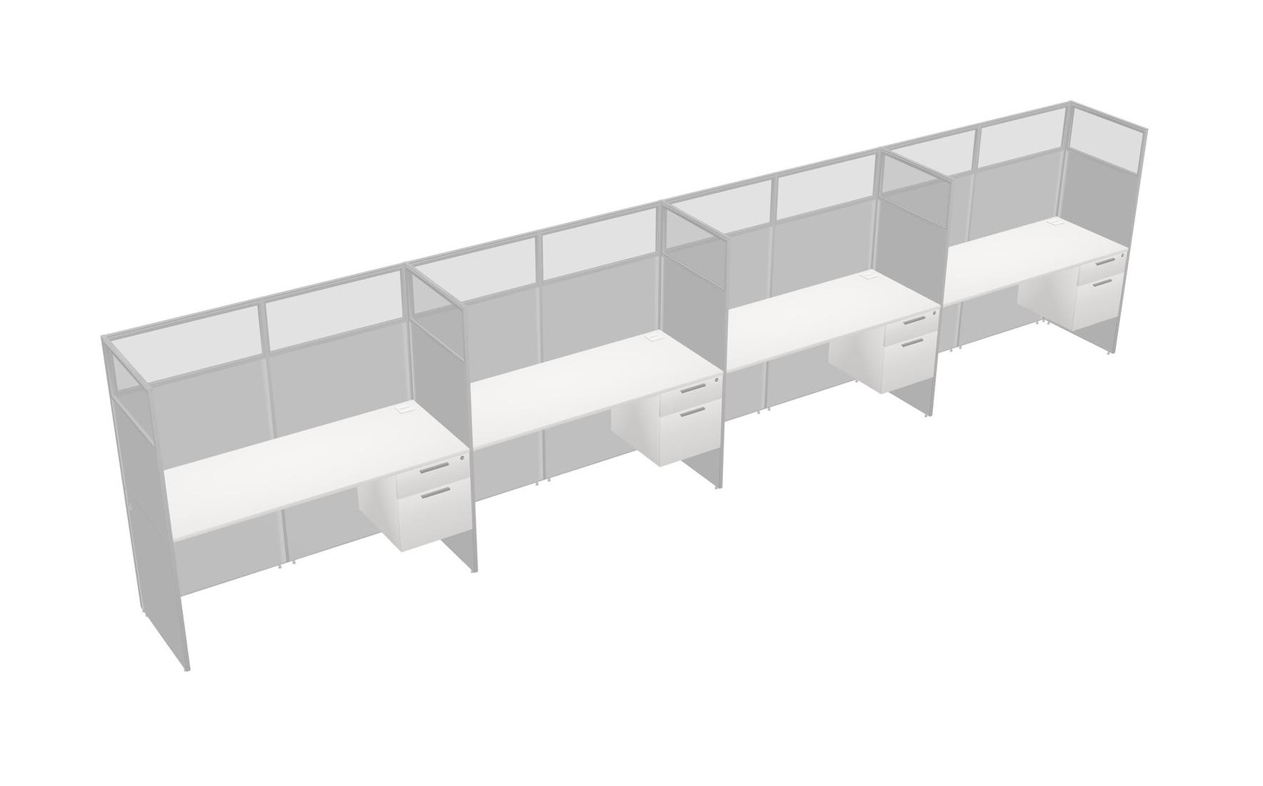 White Shared Rectangular Office Cubicle Panel System With Hanging Drawers For 4 Persons