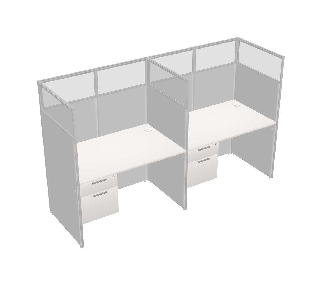 White Shared Rectangular Office Cubicle Panel System With Hanging Drawers For 2 Persons