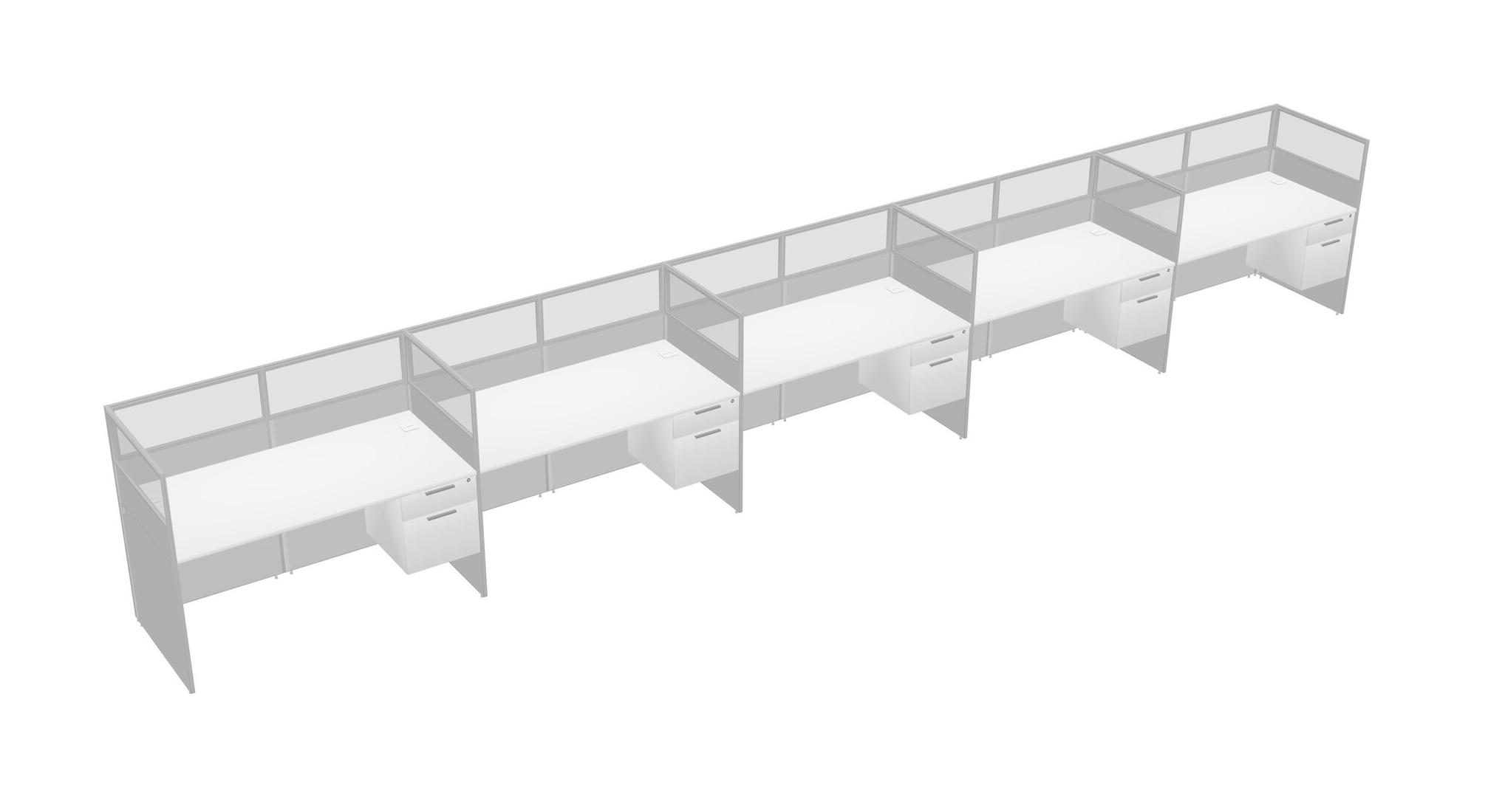 White Shared Rectangular Office Cubicle Panel System With Hanging Drawers For 5 Persons