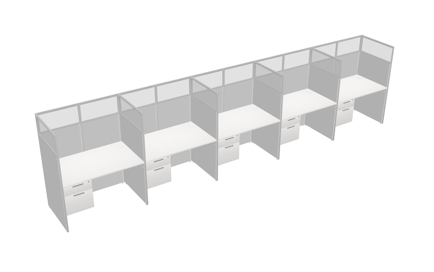 White Shared Rectangular Office Cubicle Panel System With Hanging Drawers For 5 Persons