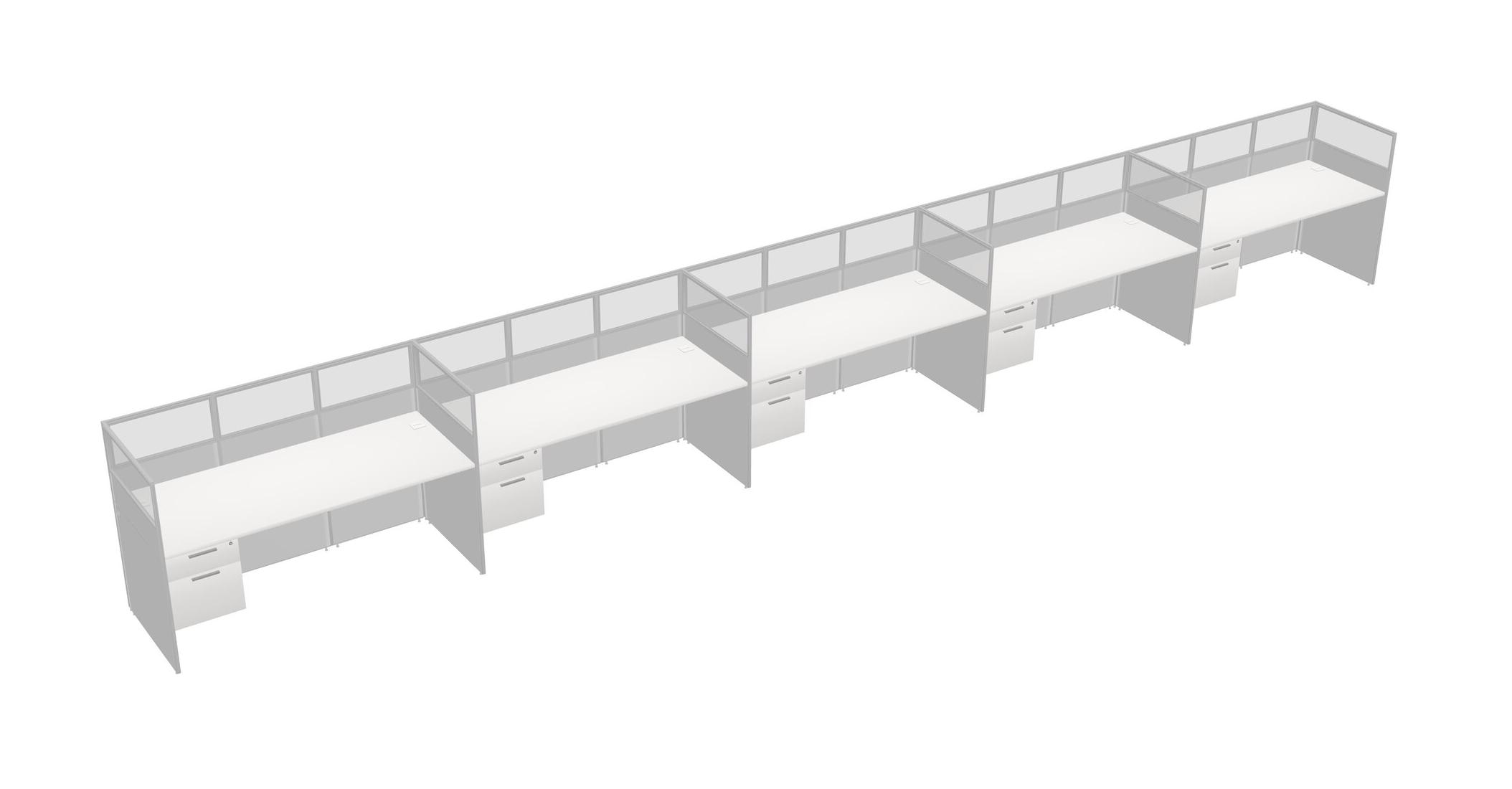White Shared Rectangular Office Cubicle Panel System With Hanging Drawers For 5 Persons