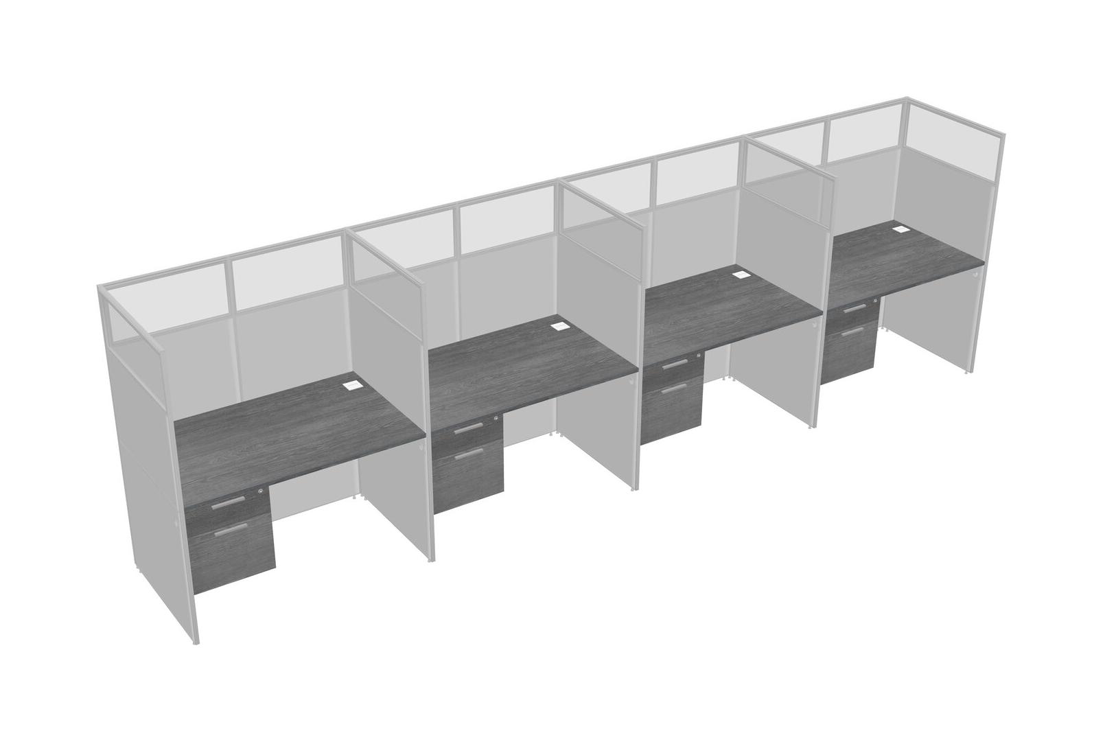 Grey Shared Rectangular Office Cubicle Panel System With Hanging Drawers For 4 Persons