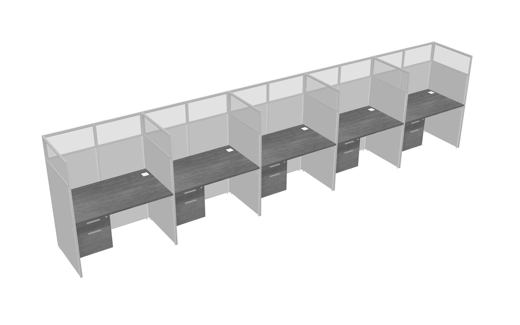 Grey Shared Rectangular Office Cubicle Panel System With Hanging Drawers For 5 Persons