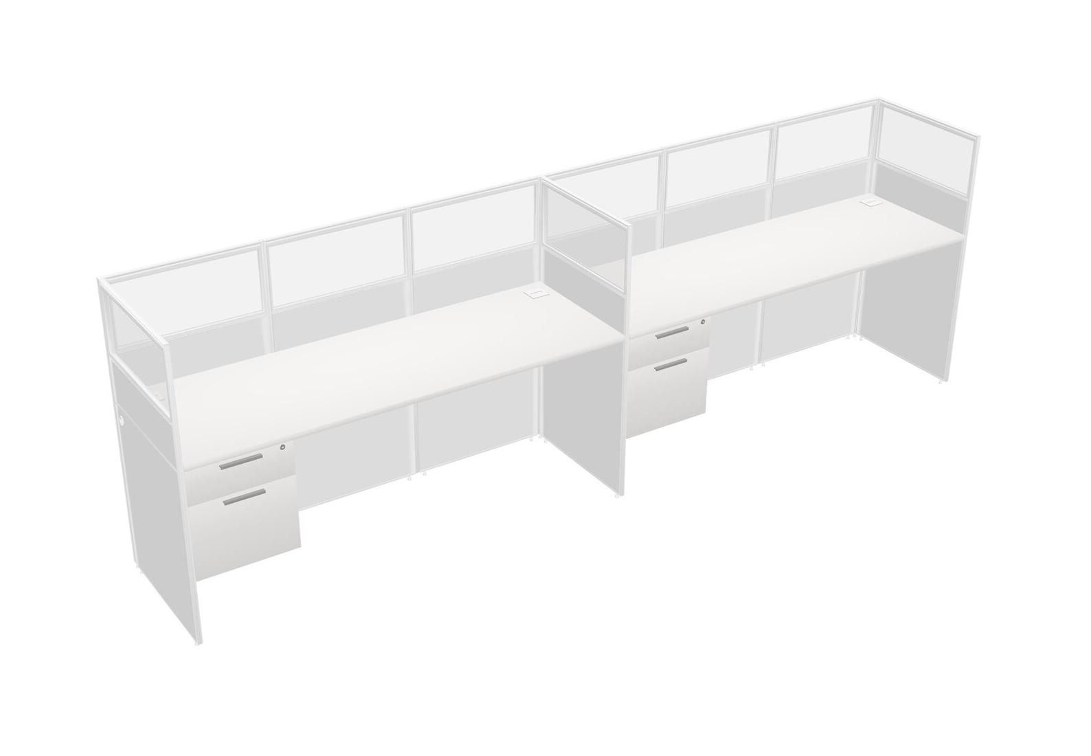 White Shared Rectangular Office Cubicle Panel System With Hanging Drawers For 2 Persons
