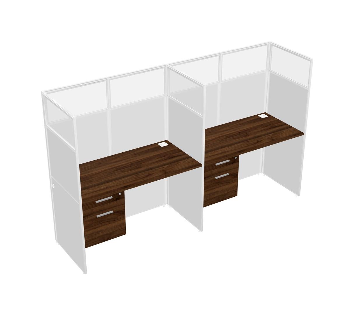 Columbia Walnut Shared Rectangular Office Cubicle Panel System With Hanging Drawers For 2 Persons