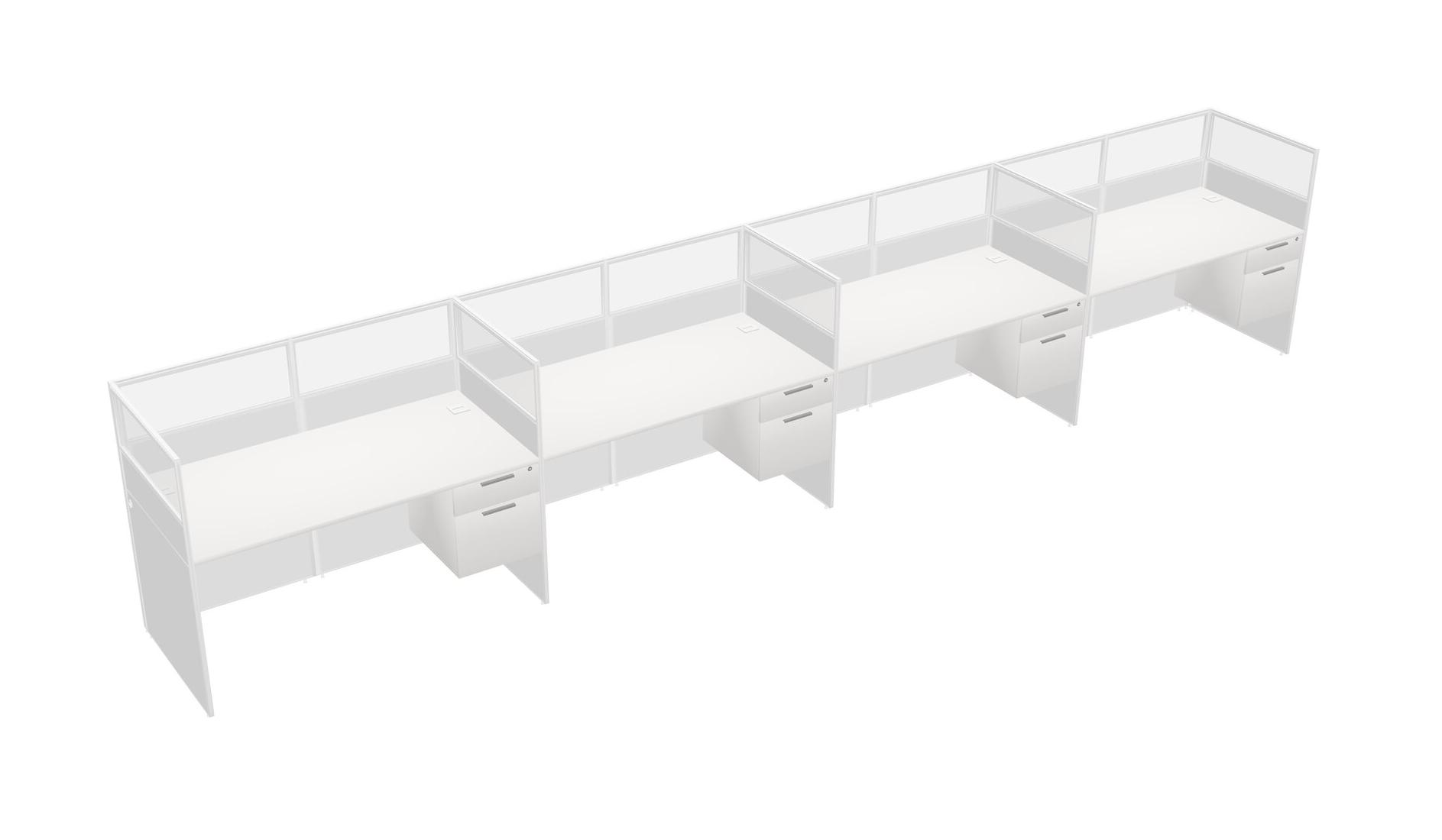 White Shared Rectangular Office Cubicle Panel System With Hanging Drawers For 4 Persons