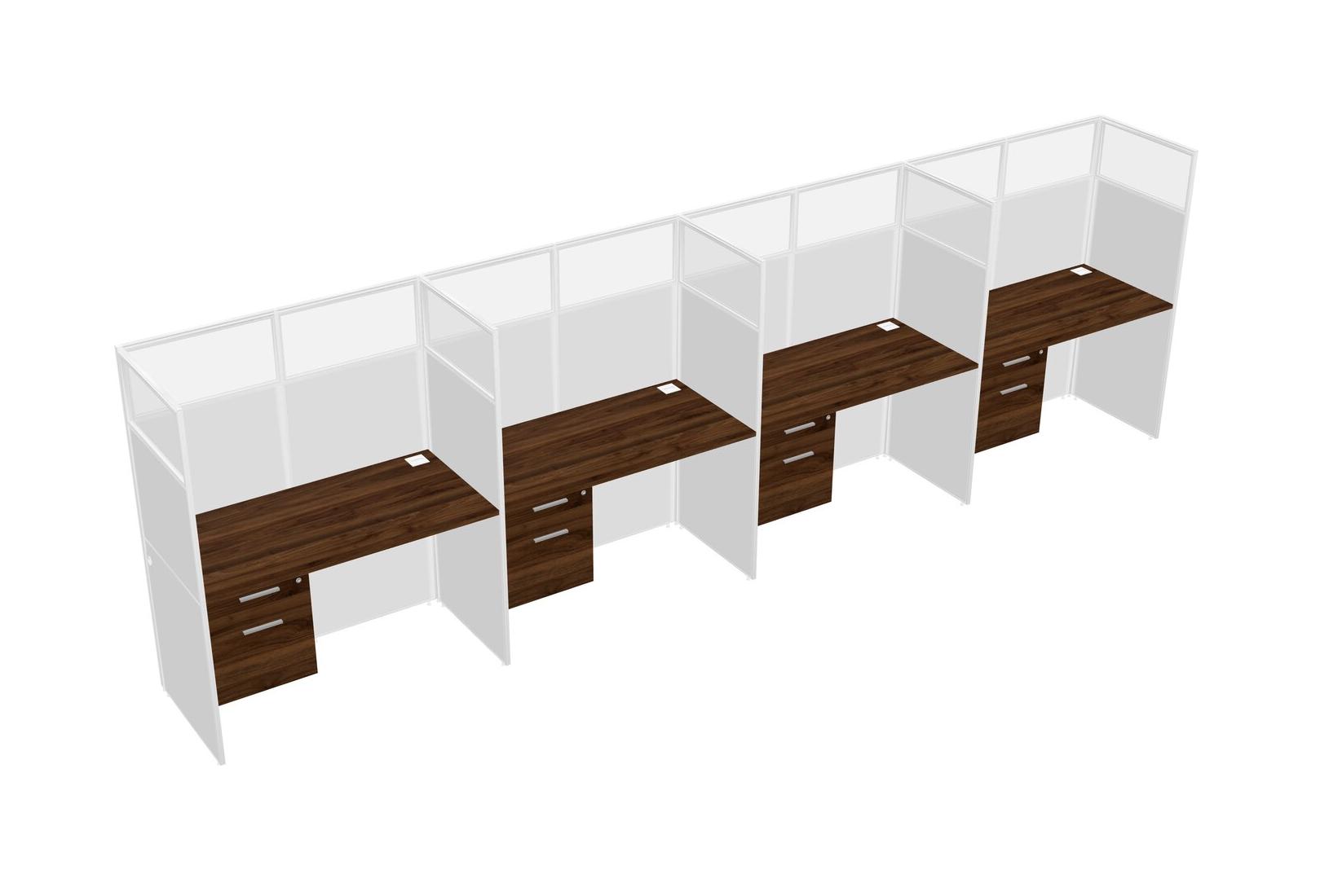 Columbia Walnut Shared Rectangular Office Cubicle Panel System With Hanging Drawers For 4 Persons