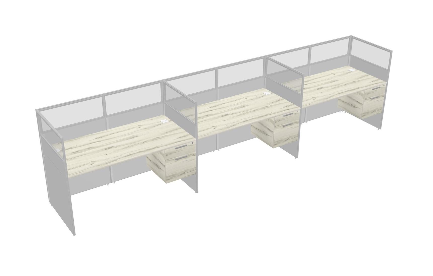 Heinne Holz Shared Rectangular Office Cubicle Panel System With Hanging Drawers For 3 Persons