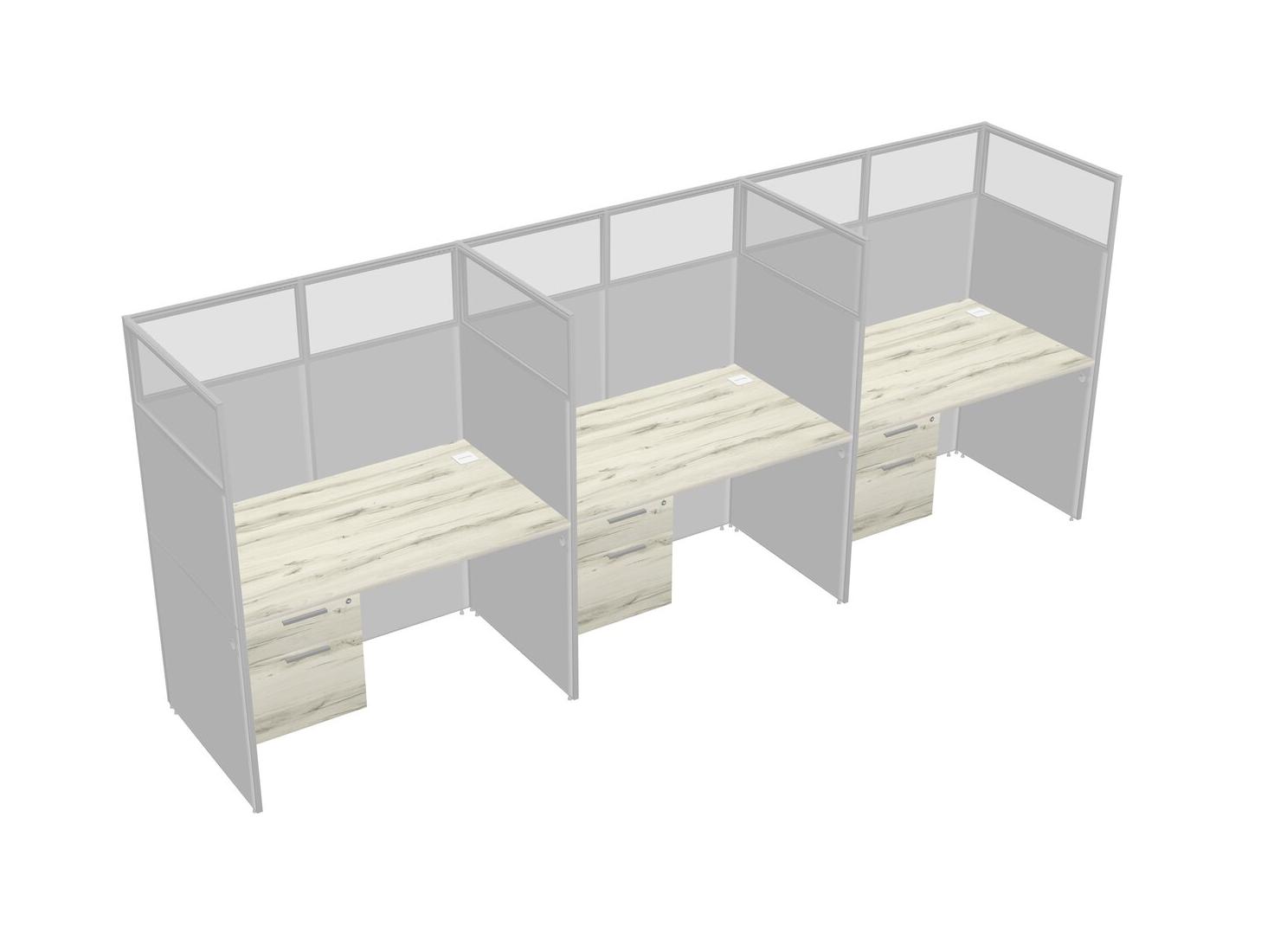Heinne Holz Shared Rectangular Office Cubicle Panel System With Hanging Drawers For 3 Persons