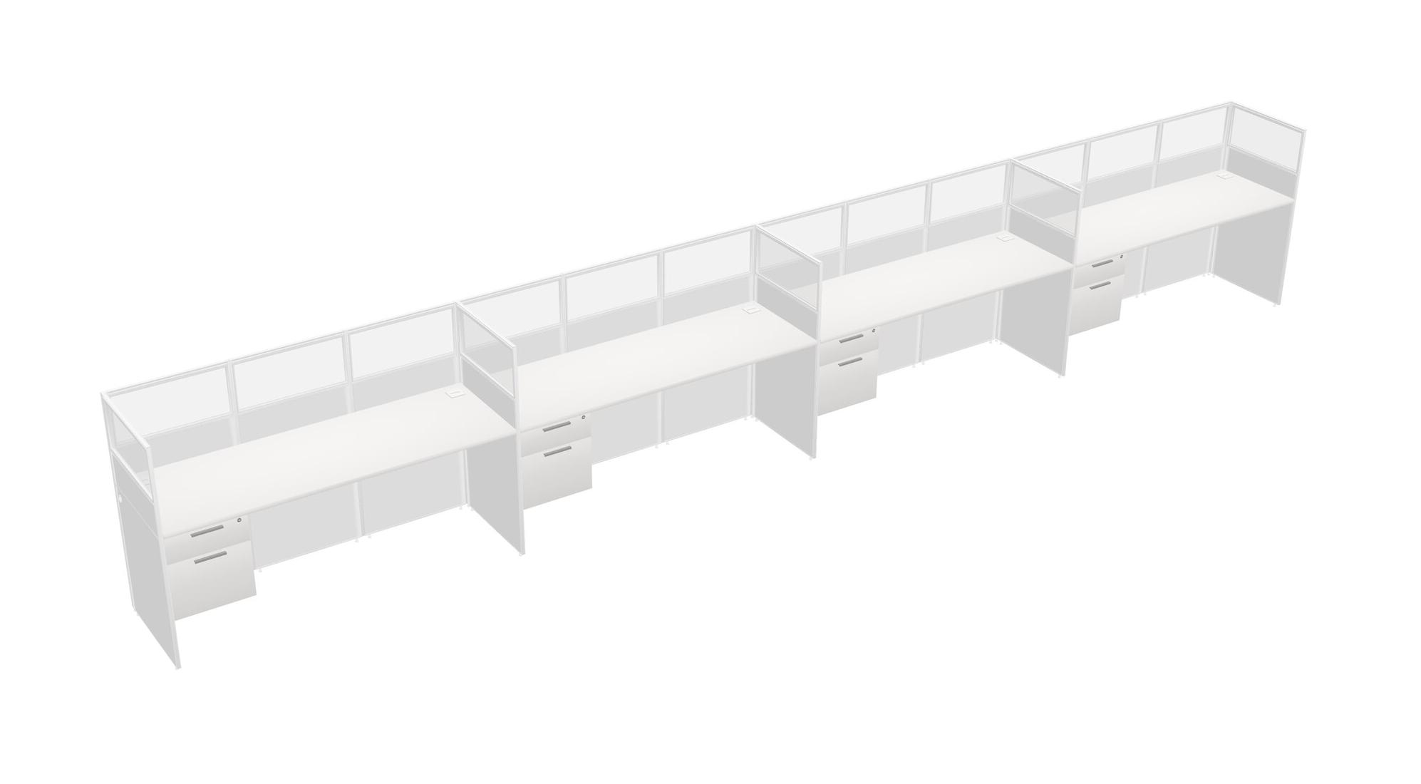 White Shared Rectangular Office Cubicle Panel System With Hanging Drawers For 4 Persons